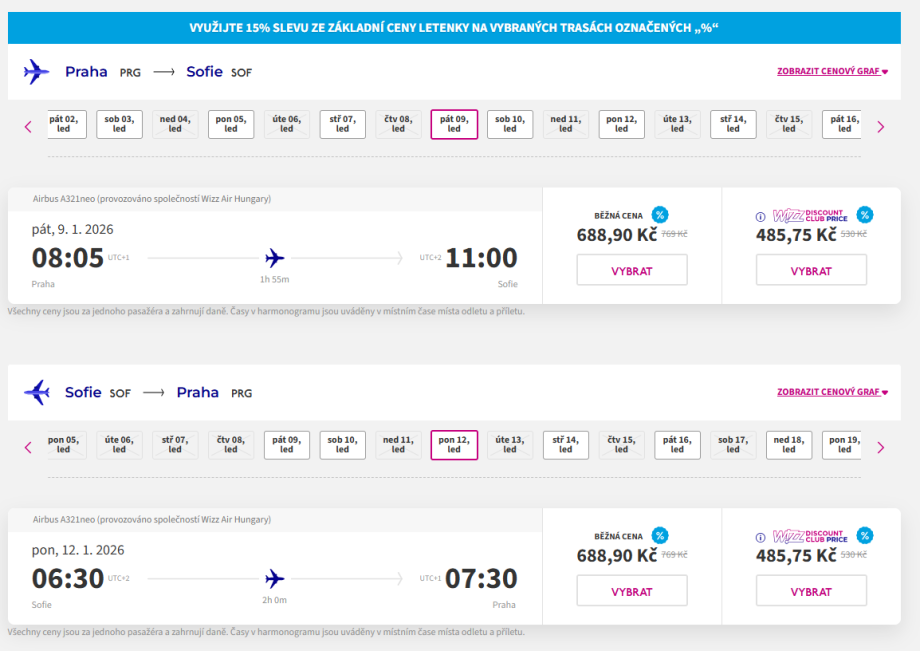 Wizz Air nabízí na leden a únor opravdu příjemné ceny letenek do bulharské metropole.