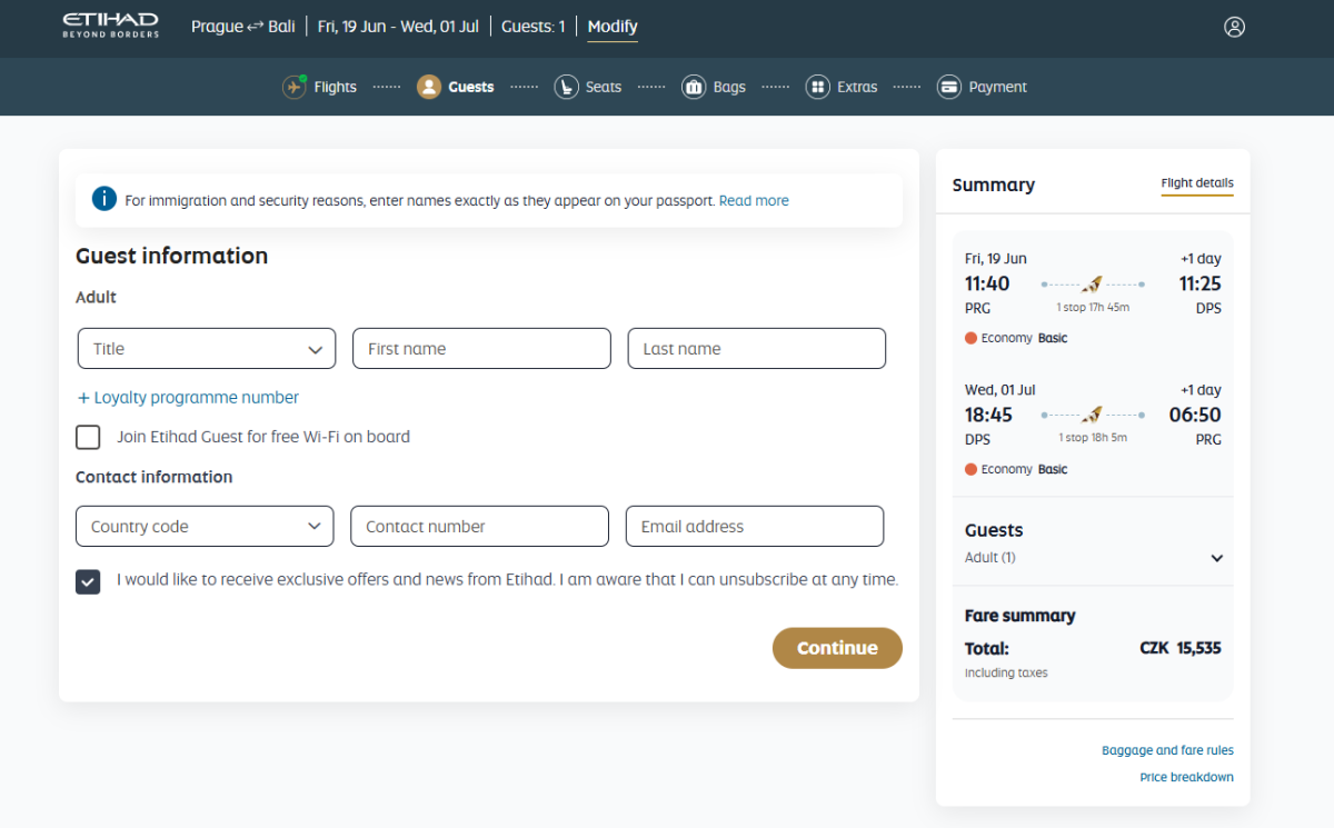 Nejlevnější letenky jsou dostupné v tarifu Basic za 15 490 Kč, který zahrnuje příruční zavazadlo.