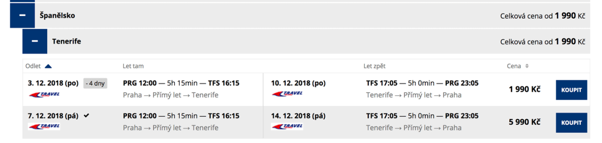 Ačkoliv o ultra levných letenkách po celé Evropě včetně Kanárských ostrovů slyšíme díky mánii Ryanairu a Laudamotion každým dnem, pro obyvatele Středočeského kraje a Prahy bývá často limitující nutnost dojezdu na vzdálenější letiště, ať už v Berlíně či Vídni. A pro ty z vás, kdo upřednostní pohodlí před ve výsledku ne příliš velkým finančním rozdílem, přinášíme tip na letenky na Tenerife s odletem z Prahy včetně odbaveného zavazadla do 23 kg a občerstvení za letu za pouhých 1 990 Kč.