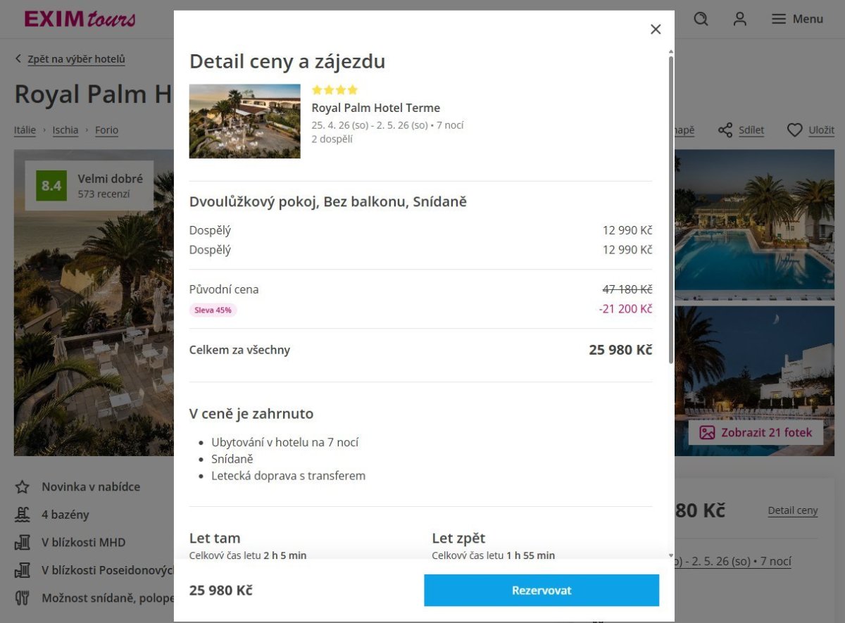 V ceně je kromě ubytování také zpáteční let z Prahy do Neapole a následný transfer autobusem a trajektem přímo do hotelu.