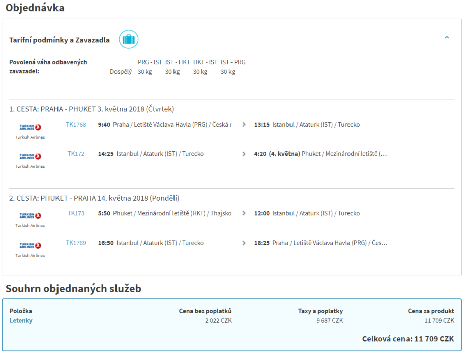 Odlety na Phuket jsou dostupné během května, června a října (cca o 1.000 Kč dráž) s tím, že návraty jsou možné kdykoliv kromě srpna a září. Při výběru letenek můžete místy bojovat s offline tarify, kdy se zobrazená nabídka ukáže jako nedostupná, nicméně dostupných termínů je stále hodně. Bude-li první nedostupná, druhou a další už v pohodě koupíte.