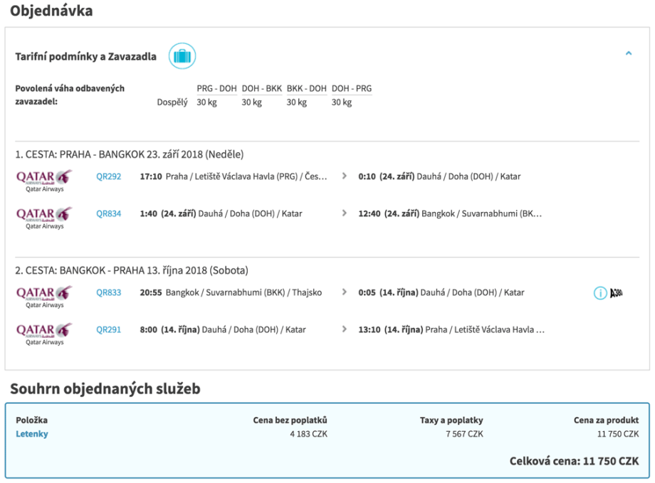 Letenky můžete rezervovat také přímo na qatarairways.com.