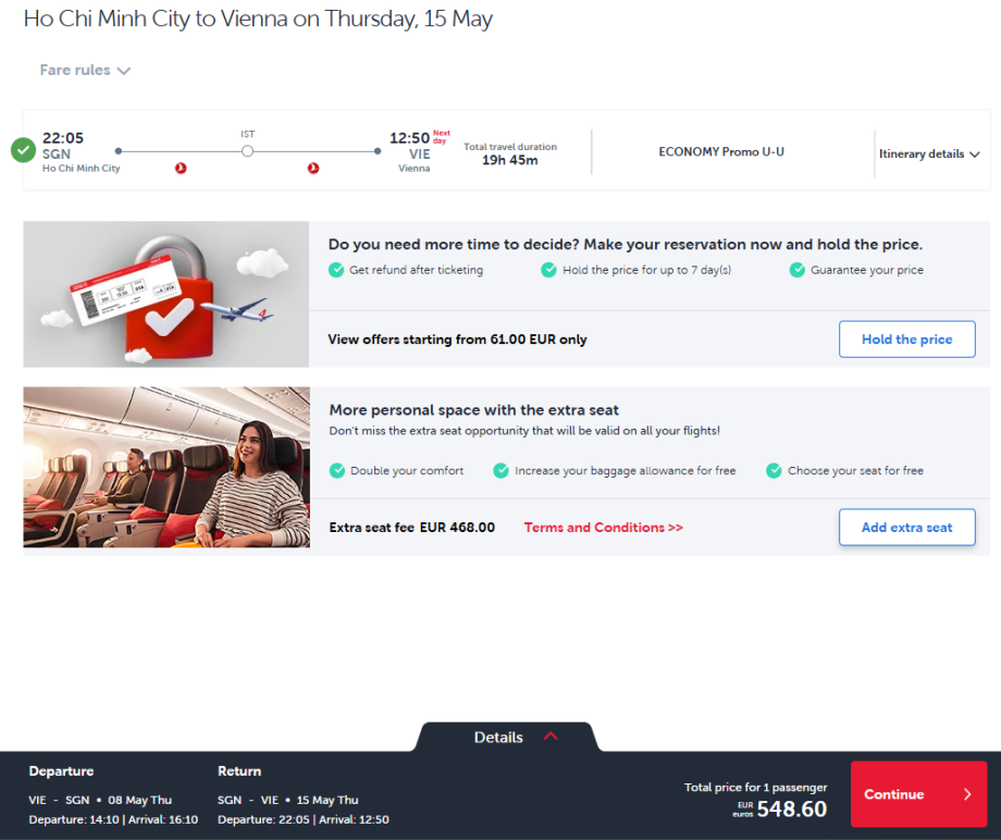 Vydejte se z Vídně do Vietnamu, ať už do Ho Či Minova Města nebo Hanoje, za skvělé ceny. Aktuálně je možné zakoupit zpáteční letenky s dostatečným předstihem na téměř celý rok 2025 až do března 2026.