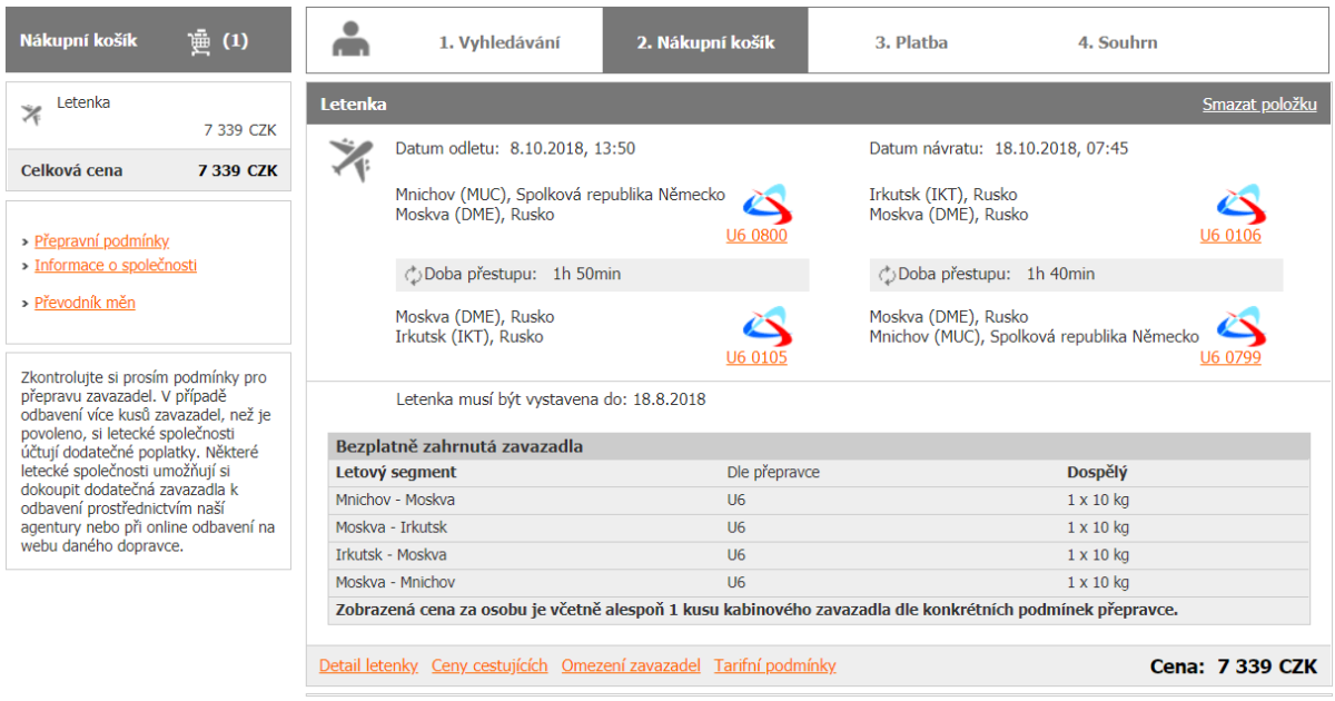 - V ceně je V ceně odbavené zavazadlo do 10 kg + standardní příruční.