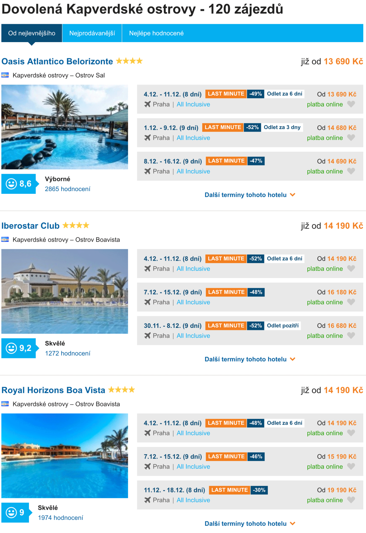 Přihlédneme–li k faktu, že letenky na Kapverdy nestojí méně jak 9 tisíc, do odletu máte necelý týden času a běžná cena zájezdů na Kapverdské ostrovy činí 22 000 Kč, není příliš o čem přemýšlet.