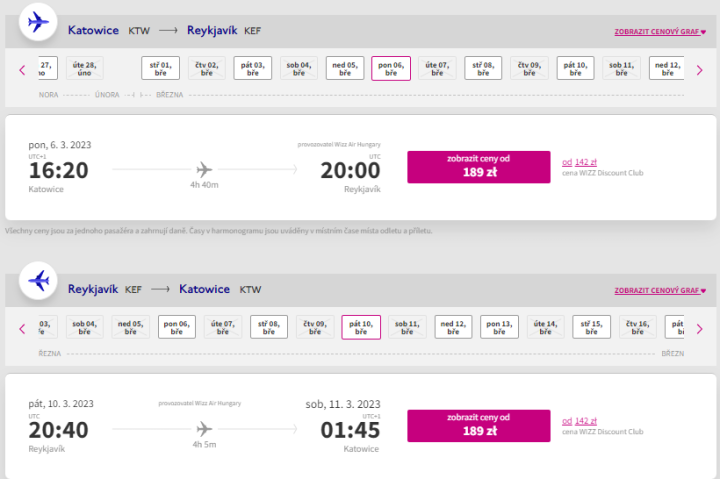 Z obou měst pořídíte zpáteční cestu za cca 1 950 Kč, resp. kolem 1 450 Kč se členstvím ve věrnostním klubu WDC, které se při cestě ve 2 vyplatí už při první cestě.