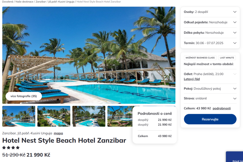 Zanzibar v top sezoně o prázdninách na týden do 4* hotelu. Zájezd od 21 990 Kč