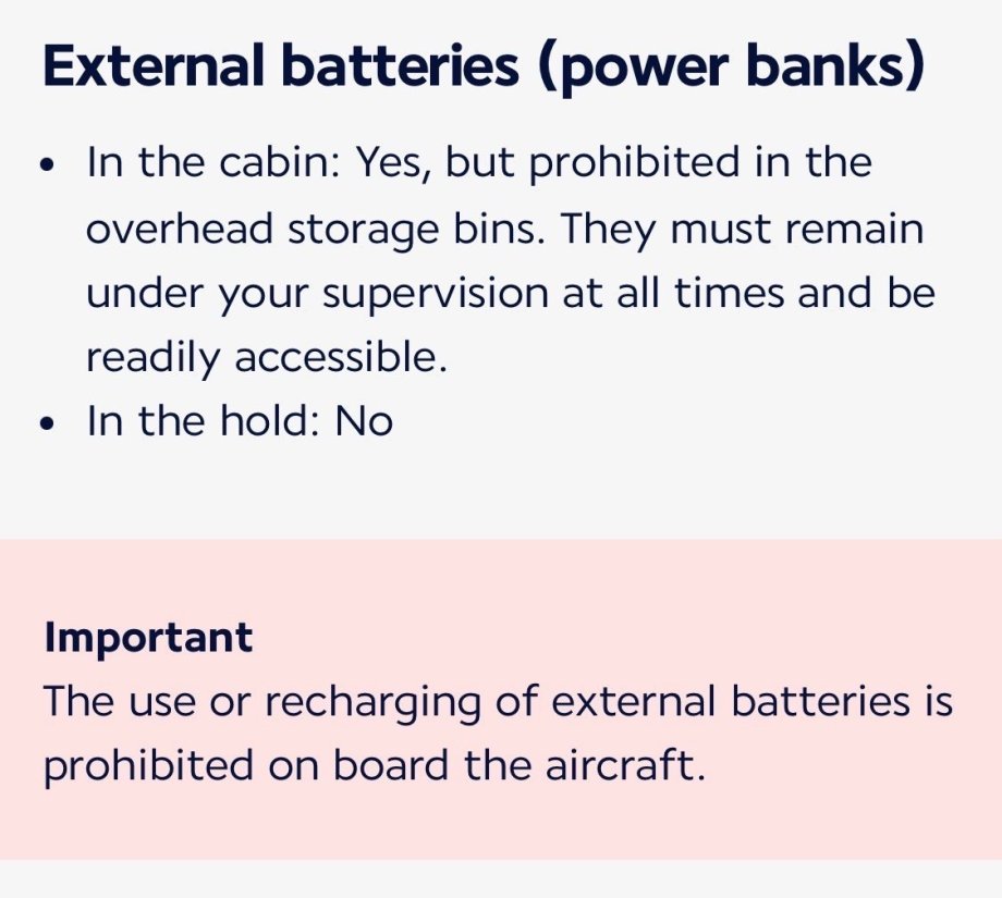 U některých aerolinek (jejich seznam je na konci článku) musíte mít powerbanku mimo příruční zavazadlo – například v kapse sedačky před sebou, ne v horním prostoru nad hlavou (overhead binu).