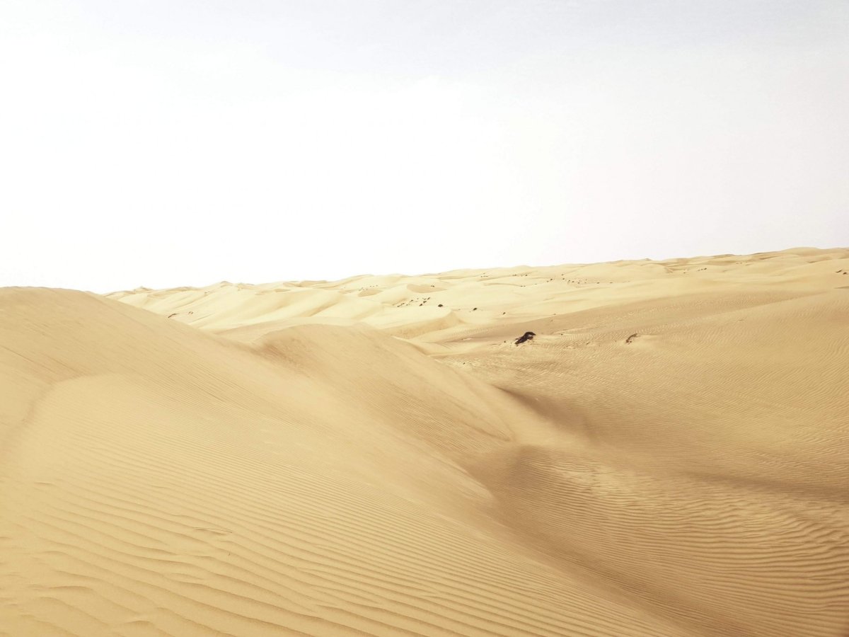 Nemůžu dospat, protože po naší návštěvě Jordánska, jsem si pouště zamilovala a neuvěřitelně se těším. Nemáme žádného průvodce, tak si na mapě najdeme cestu, která k ní vede a vydáváme se k poušti autem “na divoko”. Jakmile přijedeme k poslední odbočce a další cesta není pro naše auto sjízdná, bereme kšiltovky, batoh a šineme si to v neuvěřitelném hicu do horoucího pekla. V každém průvodci se dočtete, že máte nahlásit svou lokaci svým blízkým před vstupem do pouště bez průvodce. No, už to chápu. Rozběhnu se na vrchol první písečné duny a zůstanu zírat. Okolo je další a další a dalších milion stejných dun, nikde nikdo, jen lehce pofukuje vítr a sluníčko neuvěřitelně pálí na každém odhaleném kousku těla. Vypadne ze mě jen “wooow”. Na živo je vždycky všechno krásnější, ale tohle je prostě TOP. Vystoupáme postupně na další tři nebo čtyři duny, ale protože je opravdu neuvěřitelné teplo a přeci jen nemáme toho průvodce, po pár minutách zírání a pár fotkách se otáčíme a vracíme se zpět. Honza si samozřejmě stihne spálit chodidla a cestou nadává, jak písek pálí…. Když on si pořád myslí, že žabky jsou nejlepší obuv na dovolenou, tak mu radši nic neříkám, jen se bavím. :D