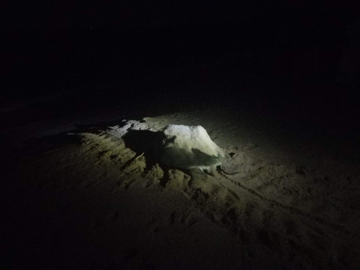 Večer se vydáváme na “masovou” turistickou atrakci, a to do želví rezervace, které se nachází v Ras Al Jinz. Za celou dobu nepotkáváme moc turistů, ale tady na parkovišti potkáváme 4 zájezdové autobusy a na recepci asi 150 turistů, kteří se cpou místními datlemi a zapíjejí je kávou. No, asi to občerstvení není pro “nezájezďáky”, ale jdeme si taky nabídnout. :D Po dobře zvládnuté organizaci jednotlivých skupin, jdeme za tmy asi 20 minut k pláži, postupně se celá skupinka utiší, a sledujeme průvodce, který nám ukazuje, ať se zastavíme a čekáme. Všichni jsme napnutí jak struny, ale za chvilku se posuneme o pár metrů dál a vidíme obrovskou želvu, která už zřejmě nakladla vajíčka a vrací se zpět do moře. Máme obrovské štěstí, protože je po sezóně. Kdy je sezóna už si nepamatuju, ale tuším, že zmiňovali červen, červenec a srpen…. Následně vidíme další želvu, která vajíčka zrovna klade do písku. Nesmí se fotit s bleskem, takže fotky nemáme, ale vůbec nám to nevadí. Vidět želvy ve svém přirozeném prostředí… tohle byl opravdu silný zážitek. V této přírodní rezervaci se k želvám chovají opravdu ohleduplně, takže doporučuji.