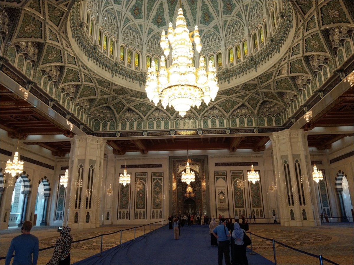 Hurá! Sice dneska odjíždíme domů, ale až pozdě večer, takže se konečně dočkám návštěvy mešity Sultana Qaboose. Naposled dopoledne využíváme bazén a ve 12:00 opouštíme hotel. Jedeme do mešity, vstup je zdarma, ale nezapomeňte, že musíte mít zahalené nohy, ramena a i hlavu. Jsme na to zvyklí z Asie, takže jsme připraveni a vstupujeme do obrovského komplexu, který je tak neuvěřitelně čistý a nablýskaný, že mám potřebu si sundat boty. Kromě obrovské zahrady a menších či větších zákoutí navštívíme modlitebnu určenou pro ženy a pak hlavní modlitebnu pro muže. Obě jsou hezké, ale mužská je krásnější, větší a taky je zde největší kusový koberec na světě. Vyzdobené stěny, křišťálové lustry a nádherný strop nám vyráží dech. Nadšení a zvědaví se přesouváme do Royal Opera House. I když zjistíme, že je skoro celý komplex uzavřen pro turisty, stejně zaplatíme zlevnění vstupné 2 OMR a jdeme se podívat alespoň do “předsálí”. Jakmile ho spatříme, strašně nás mrzí, že nemůžeme nikam jinam. Opět jen mlčíme a procházíme se po místnosti. Co víc říct, ti ománci to prostě umí. ❤ Nadšenci selfie fotek nesmí určitě zapomenout navštívit místní toaletu.