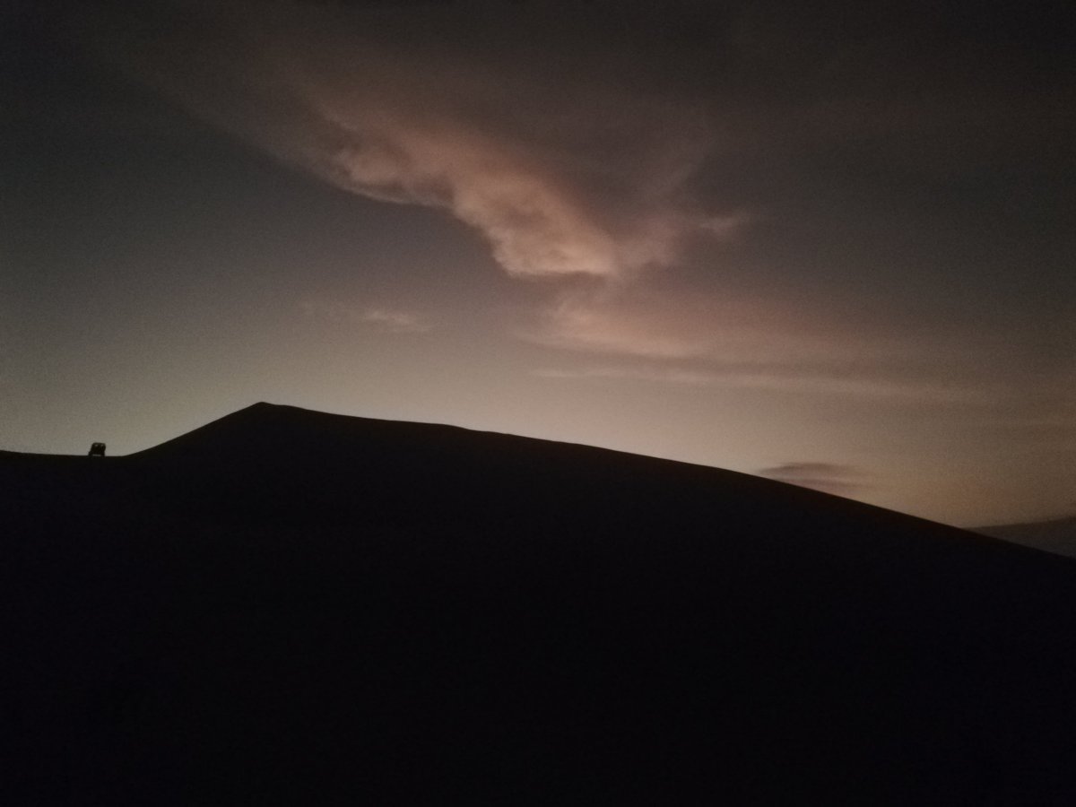 Následně naše buggy vyráží pokořit několik dalších dun. Na jedné zastavujeme a pozorujeme západ slunce. Projížďka pak pokračuje a poslední sandboarding provádíme již téměř za tmy. Písek máme úplně všude.