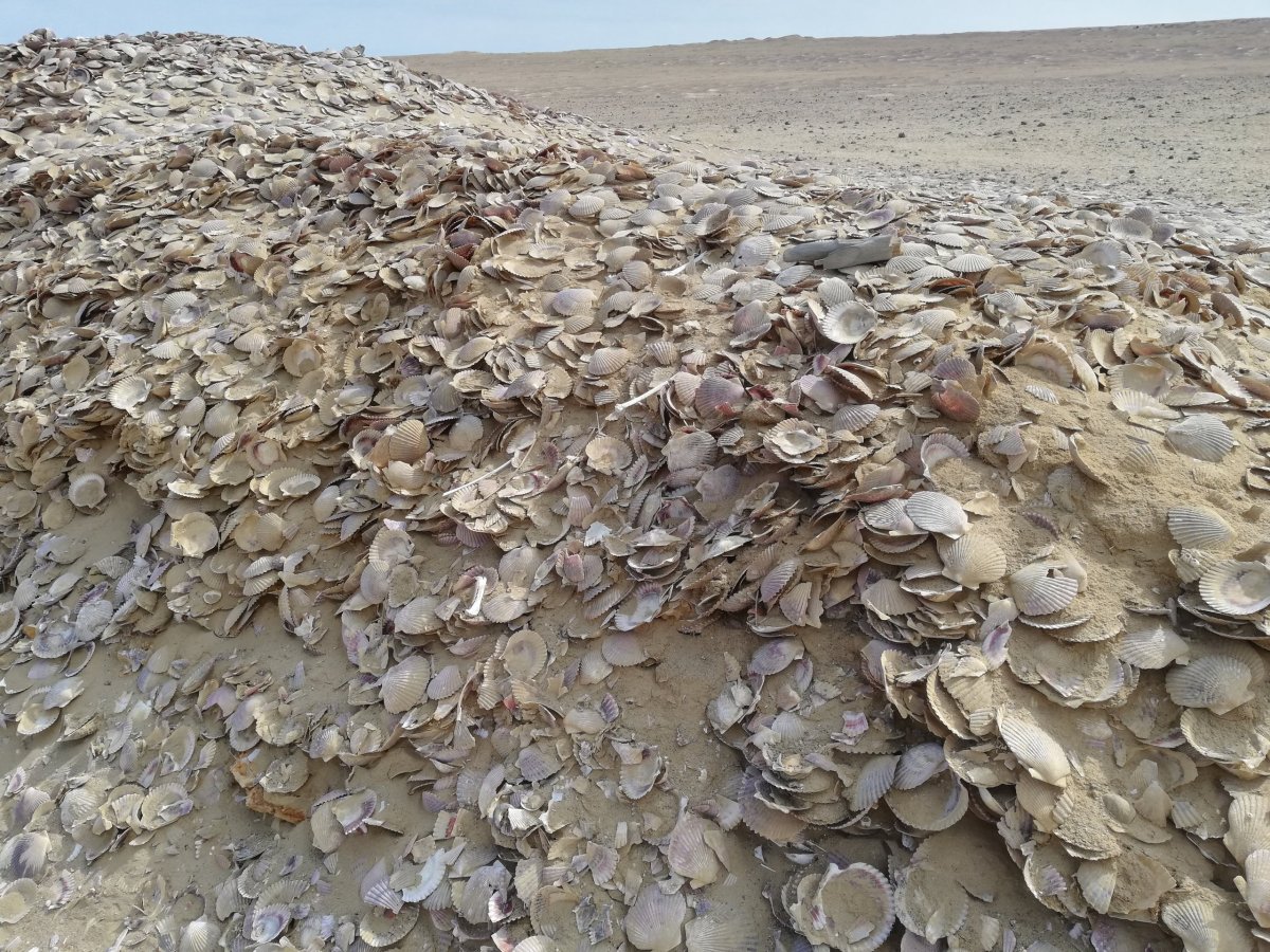 Projížďka je naprosto skvělá, výhledy fenomenální. Neustálé se střídají výhledy na písčité duny a na příkré mořské útesy a nás to nepřestává bavit. Po cestě zpátky spatřujeme obrovskou haldu mušlí uprostřed ničeho. Celkem jsme najezdili asi 43 km, dá se to samozřejmě i zkrátit. Cestou dostáváme zprávu, že přístav je již otevřen, a tak prodlužujeme ubytování o jeden den a ráno vyrážíme.