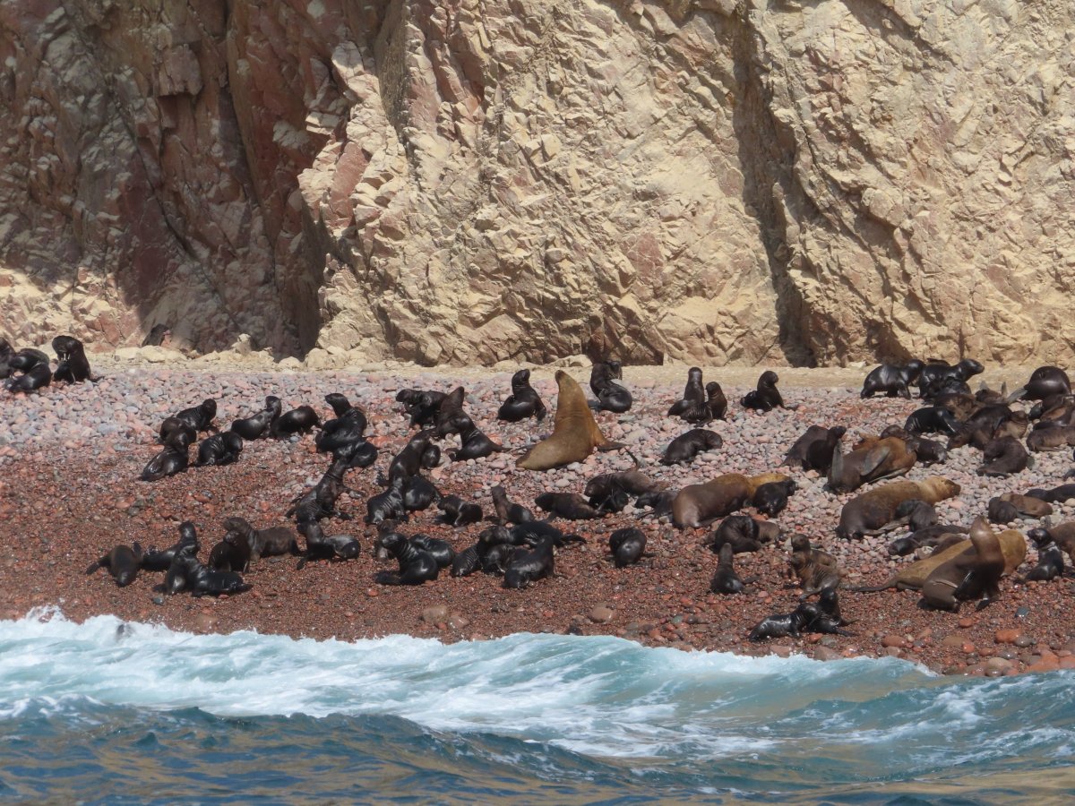 Po krátké přednášce o nejasné historii a významu obrazce pokračujeme na samotné ostrovy. Je cítit charakteristický zápach guana - ptačího trusu, který se z ostrovů pravidelně sbírá a prodává se jako hnojivo. Pozorujeme rodinku tučňáků, jak se nemotorně pohybuje po útesech. Pár lachtanů se vyhřívá na skaliskách, zatímco jiní učí svá mláďata plavat ve vodě.
