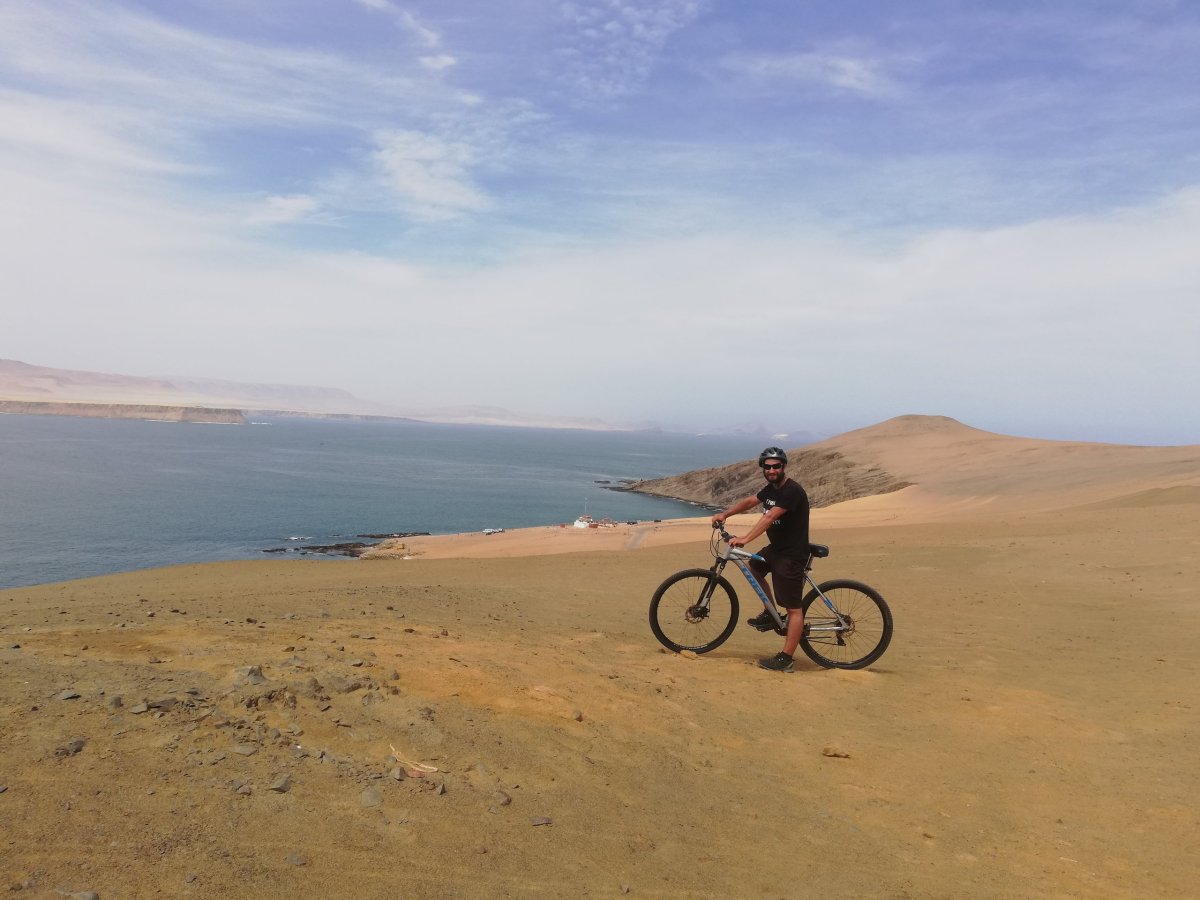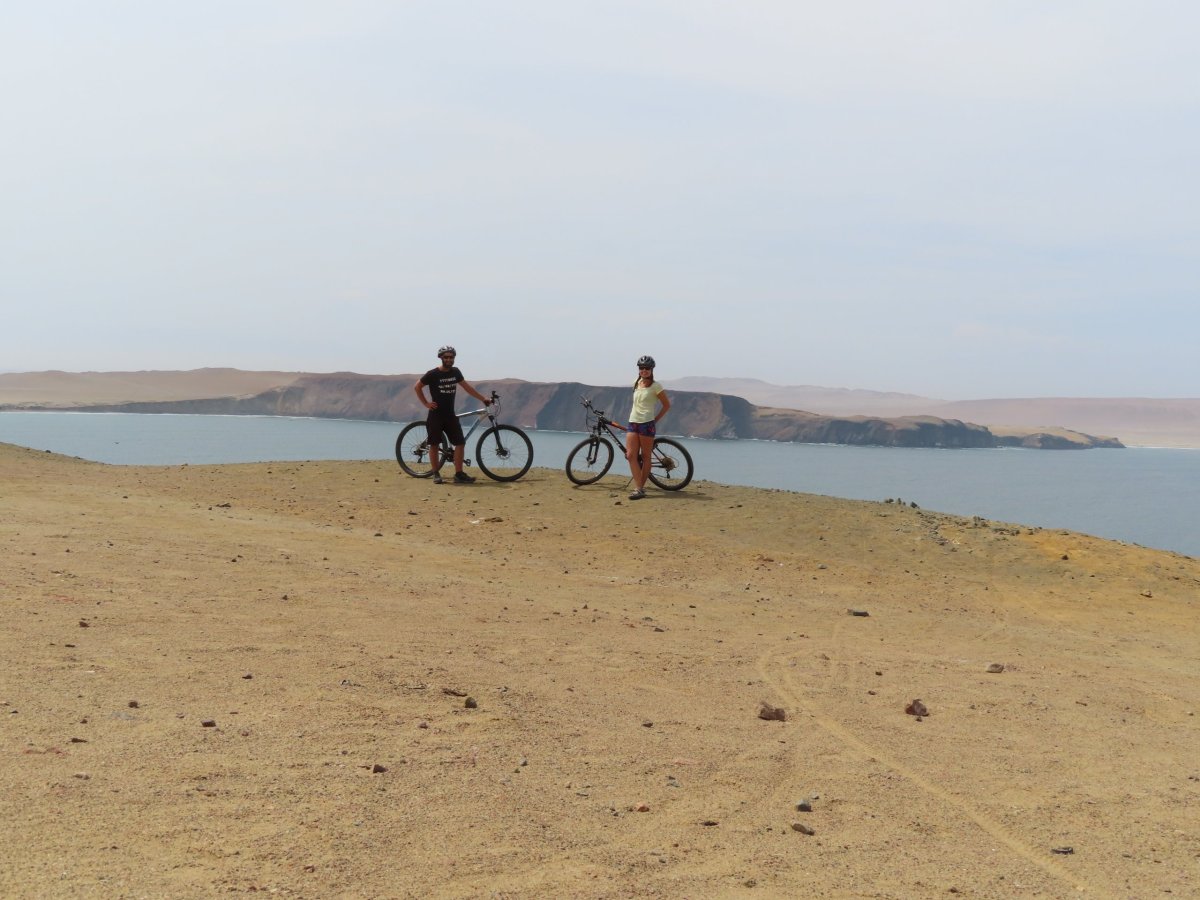 Islas Ballestas jsou označovány jako peruánské Galapágy nebo někdy trochu hůře jako Galapágy pro chudé. Je zde možné pozorovat tučňáky a mnoho dalších zvířat. Když se cestou z Limy do Paracasu snažíme zamluvit vyjížďku lodí na Islas Ballestas, dozvídáme se nemilou zprávu. Celý dnešek byl přístav zavřený a nikdo neví, kdy ho otevřou. Ráno vstáváme v 6:30 a u snídaně přijde ta nemilá zpráva - přístav je stále zavřený. Co se dá dělat, jdeme do města a půjčujeme si kola (30 PEN / os). Slečny před námi těsně vybraly poslední hezké kusy, a tak řetězy našich kol připomínají Saharu stejně jako okolní krajina. Nevadí, hlavně že to jede. Ke vstupnímu místu do Reserva nacional de Paracas je to asi 7 km (11 PEN / os). Naší první zastávkou je vyhlídka na plameňáky a pelikány. Ty vidíme z poměrně větší vzdálenosti, nicméně co se zvuků týče, je to docela koncert.
