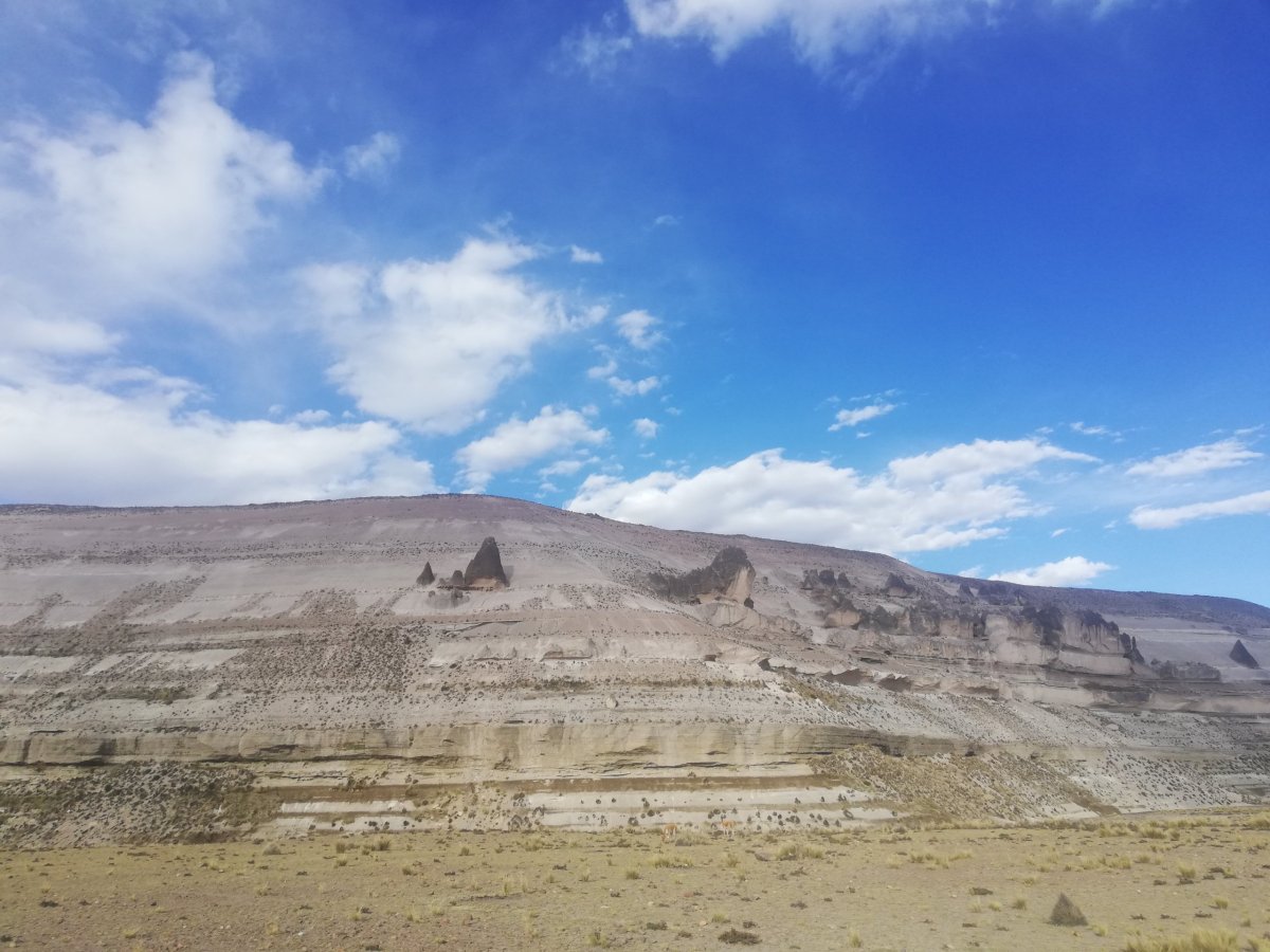 Další den se vydáváme do Cañonu de los Perdidos. Dostat se tam po vlastní ose by bylo logisticky dost náročné, a tak pro nás netradičně musíme zvolit tour přes agenturu. Jednu takovou zajišťuje přímo náš hostel (80 PEN / os), takže nemusíme nic shánět. Mini bus nás má vyzvednout v 6:30 před hostelem, což se (podle našeho očekávání) úplně neděje. V 7:05 se objevuje minibus, který nás ale nejprve převezl na jiné místo, kde přestupujeme do jiného minibusu k ostatním členům tour a pak už konečně vyrážíme. Asi po 50 minutách však znovu opět zastavujeme u silnice u několika obchodů, kde máme možnost nakoupit si s sebou jídlo a pití. Odtud pak pokračujeme do kaňonu ještě asi další dvě hodiny. Nejprve zastavujeme u vyhlídkového místa na focení a krátkou přednášku o historii kaňonu.