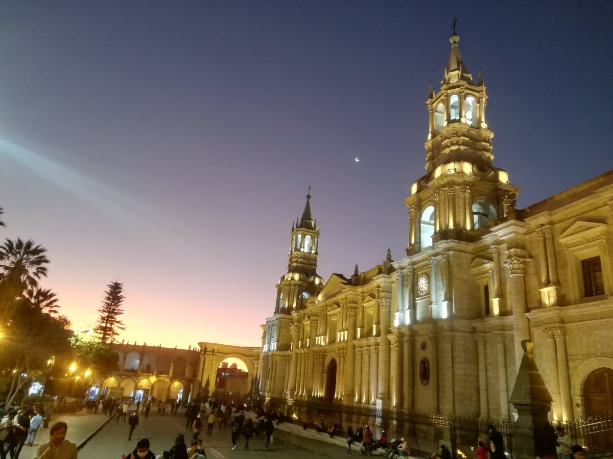 Z Colca canyonu se vracíme do Arequipy. Je to druhé největší město v Peru a také má být jedno z nejkrásnějších. Arequipě se také přezdívá Bílé město, jelikož většina budov, hlavně v historickém centru, je postavena ze "sillaru" což je druh vulkanického kamene. Historické centrum tohoto koloniálního města je zařazené na seznam UNESCO. Do Arequipy přijíždíme až za tmy, a tak jsme po cestě taxíkem do hotelu a následně do restaurace trochu skeptičtí, jestli je město opravdu tak hezké, jak se říká.