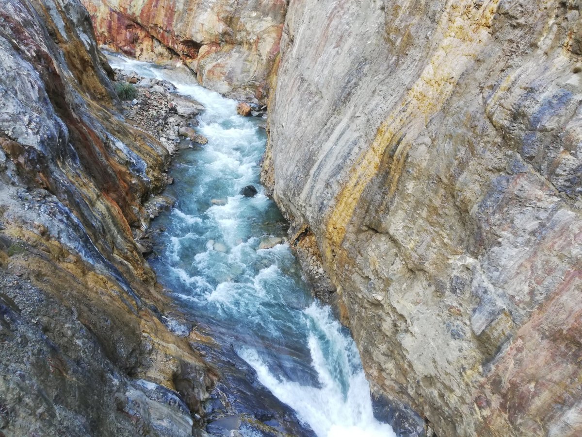 Další den nás čeká 18 km pouze klesání jednoduchým terénem. Cesta není nijak extrémně zajímavá a je možné ji jet autobusem, nicméně nám to přijde škoda a máme čas, takže vyrážíme po svých. Cesta vede celou dobu podél řeky. My jsme se hned na začátku zapovídali a zapomněli přejít řeku na levý břeh, kudy vedete turistická trasa. Přejít na druhý břeh později už moc nejde, takže jsme šli celou dobu po prašné cestě, po které jezdí autobus. Nicméně téměř žádná vozidla jsme na cestě nepotkali, takže cesta to nebyla špatná.