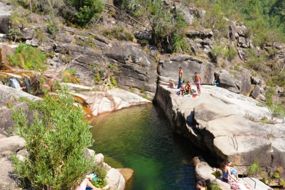 V Portugalsku je jediný národní park - Peneda-Geres, který se nachází na úplném severu země na hranicích se Španelskem. V turistických průvodcích se toho o něm moc nedočtete. Turistů jsme tam potkali určitě méně než krav, které hnaly místní babči po klikatých silničkách. Ale narazili jsme tu na super koupání v divočině - přímo ve vodopádu Cascata Tahiti. Řeka tu ve skalách tvoří hluboké tůňky, do kterých se dalo i skákat. Teploty se šplhaly přes 30 stupňů, takže parádní osvěžení.