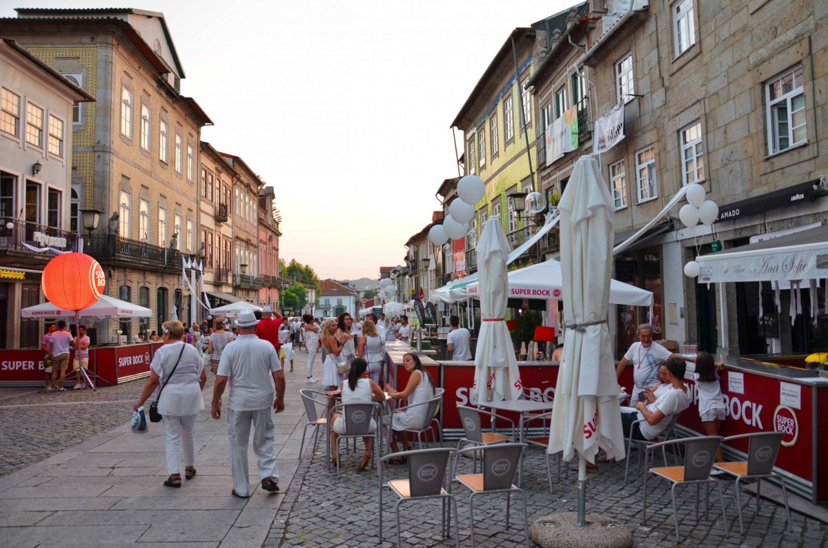 Možná by se tenhle bod mohl jmenovat i největší trapas. Do města Braga jsme přijeli až k večeru a jediná věc, po které jsme toužili, bylo se co nejrychleji najíst. Pomalu jsme se blížili k centru a už v postranních uličkách nám začalo být něco divné. Všichni měli na sobě bílé oblečení. Když jsme dorazili k hlavnímu náměstí, bylo nám jasné, že dneska jsme přípravu totálně podcenili.