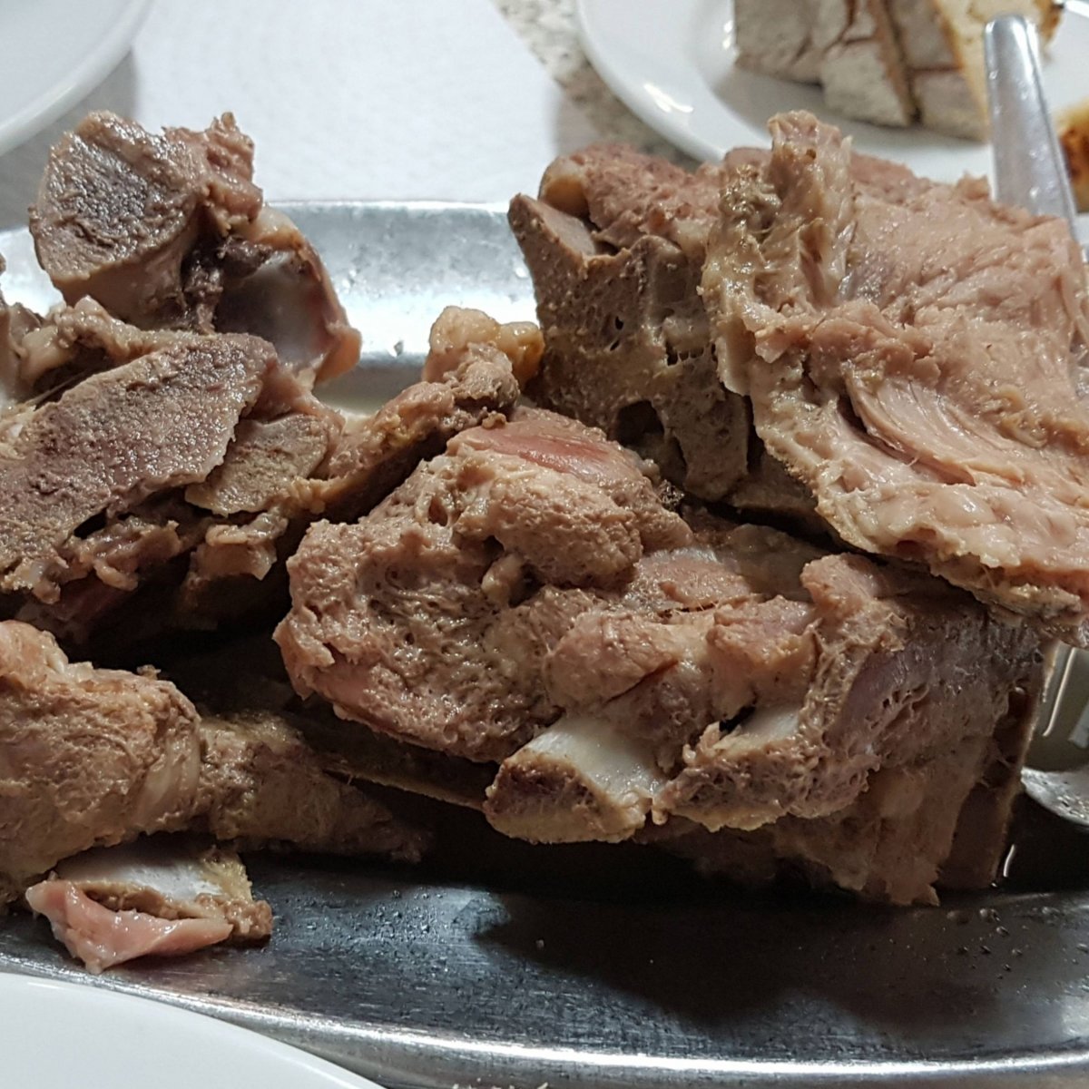 V Coimbře jsme zabloudili do bistra Quim de Ossos, kde jsme vyzkoušeli Ossos Carregados – vařené vepřové kosti. Na pohled to není nejvíc sexy jídlo na světě, prostě něco na způsob ovaru. Ale jakmile ochutnáte první sousto, zamilujete si ho. V tomhle bistru jsme narazili jen na místní a obsluha ani náznakem nemluvila anglicky. Jak se nám už poněkolikáte potvrdilo, tahle autentická místa jsou zárukou skvělého gurmánského zážitku. Jako druhé jídlo jsme si vybrali fazole s masem a klobásou na brazilský způsob (teda jestli Google Translator nekecal). Příjemným bonusem pak byla neuvěřitelně nízká cena - předkrmy, dvě jídla, dezert, láhev vína a vody i s dýškem za 20€.