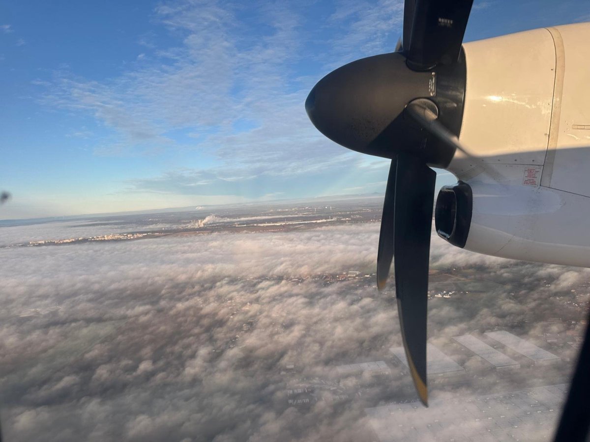 Mezi Prahou a Lucemburkem pravidelně, v pondělí a v pátek, létá lucemburský národní dopravce Luxair. Letenky jsou poměrně dobře naceněné napevno. Letadlo je malý Dash 8-400, takže uvnitř dvouřadé, ale hlavně vrtulkáč - další poprvé tohoto výletu! Let trvá něco přes hodinku a v jeho průběhu se servíruje malé občerstvení = nápoj + preclík nebo croissant. Je teda pravda, že jsme tam i zpátky měli trochu adrenalinová přistání v totální mlze, ale jinak super pohodový let.