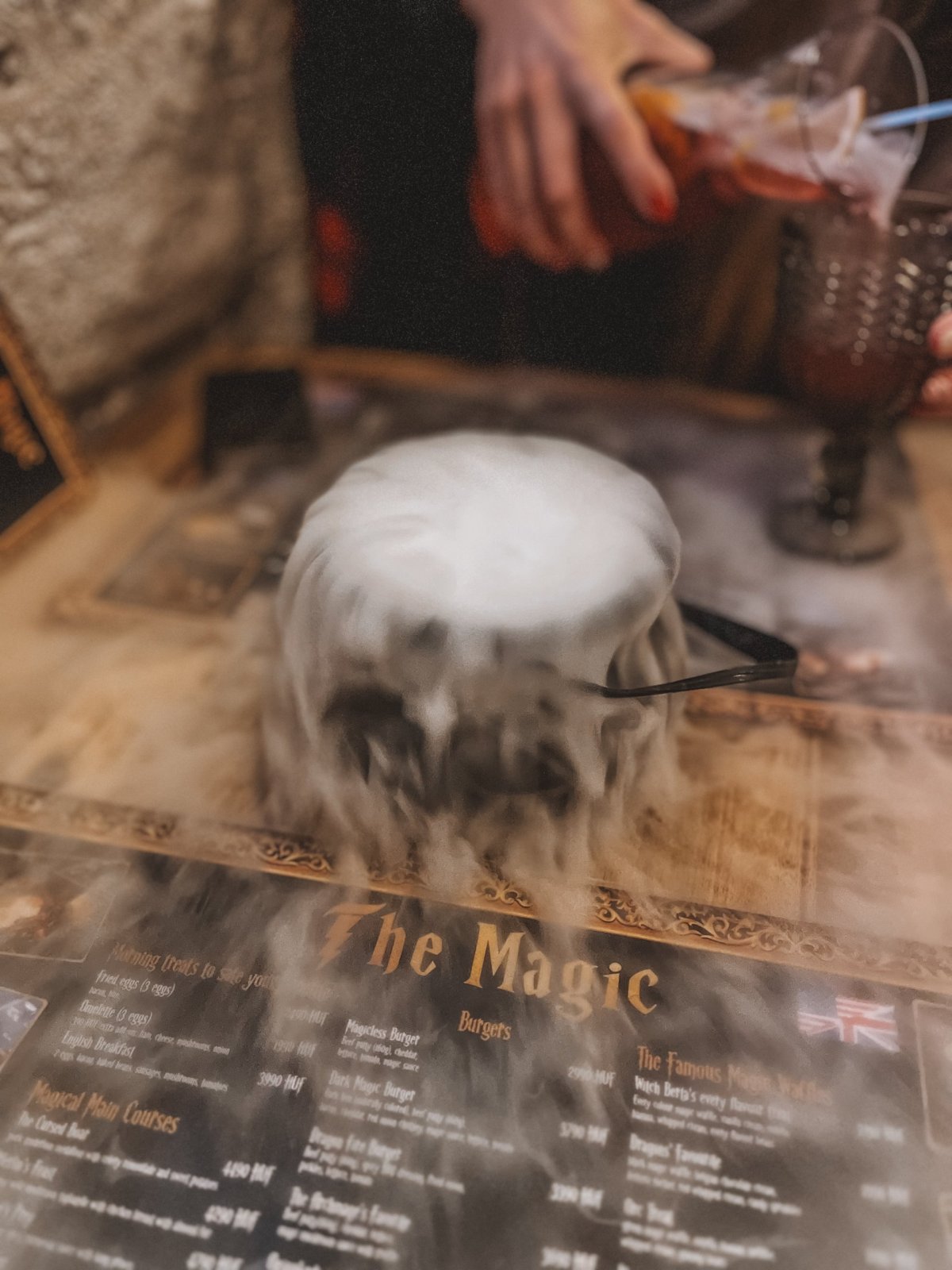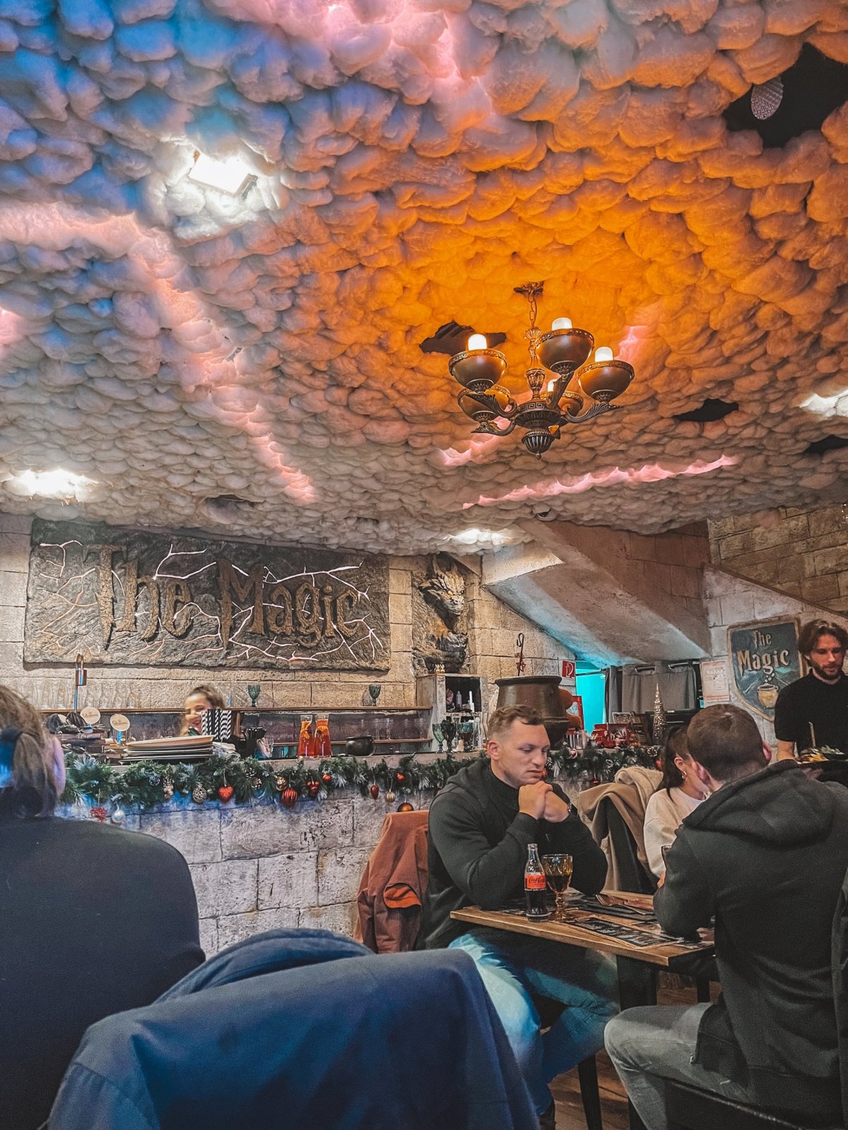 V 18 hodin jsme měli rezervaci v restauraci The MAGIC. Pokud patříte mezi nadšence Harryho Pottera, určitě si sem zajděte a to nejen na máslový ležák. Jo a připravte si nějaké zaklínadlo, bude se vám hodit ;-). Lepší je rezervaci udělat s dostatečným předstihem, nejsem si jistá, jestli je povinná, ale bez ní by vás buď nepustili nebo byste dlouho čekali na volné místo.