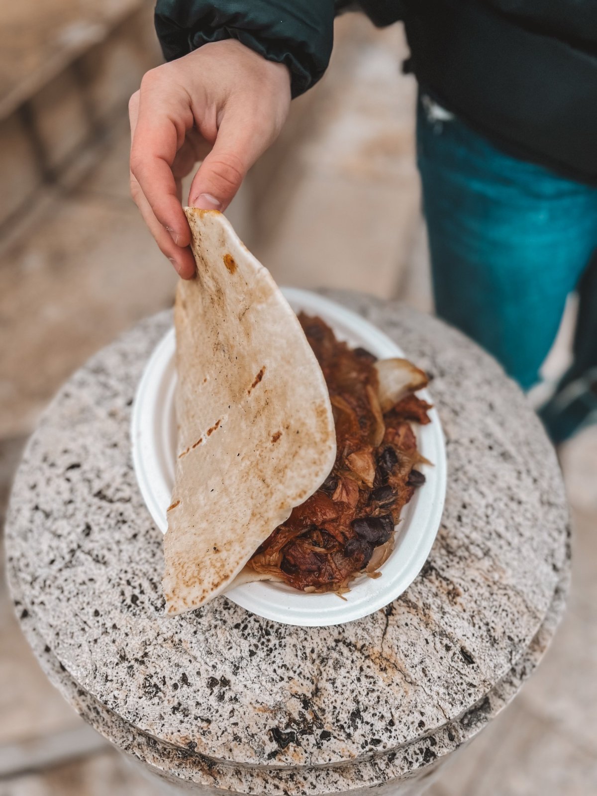 Spor přišel v momentě, kdy se začal řešit oběd. Chlap chtěl jíst venku, zatímco já, promrzlá na kost, jsem se chtěla jít ohřát někam do restaurace. Asi půl hodiny jsme nebyli schopní se domluvit, ale nakonec jsme skončili v Tulipán Bistro. Dala jsem si Hungarian ratatouille a asi vás nepřekvapí, když přinešli lečo :-D.Kousek za rohem pak na nás vykoukl budapešťský Parlament a potkali jsme i onu slavnou vánoční tramvaj.