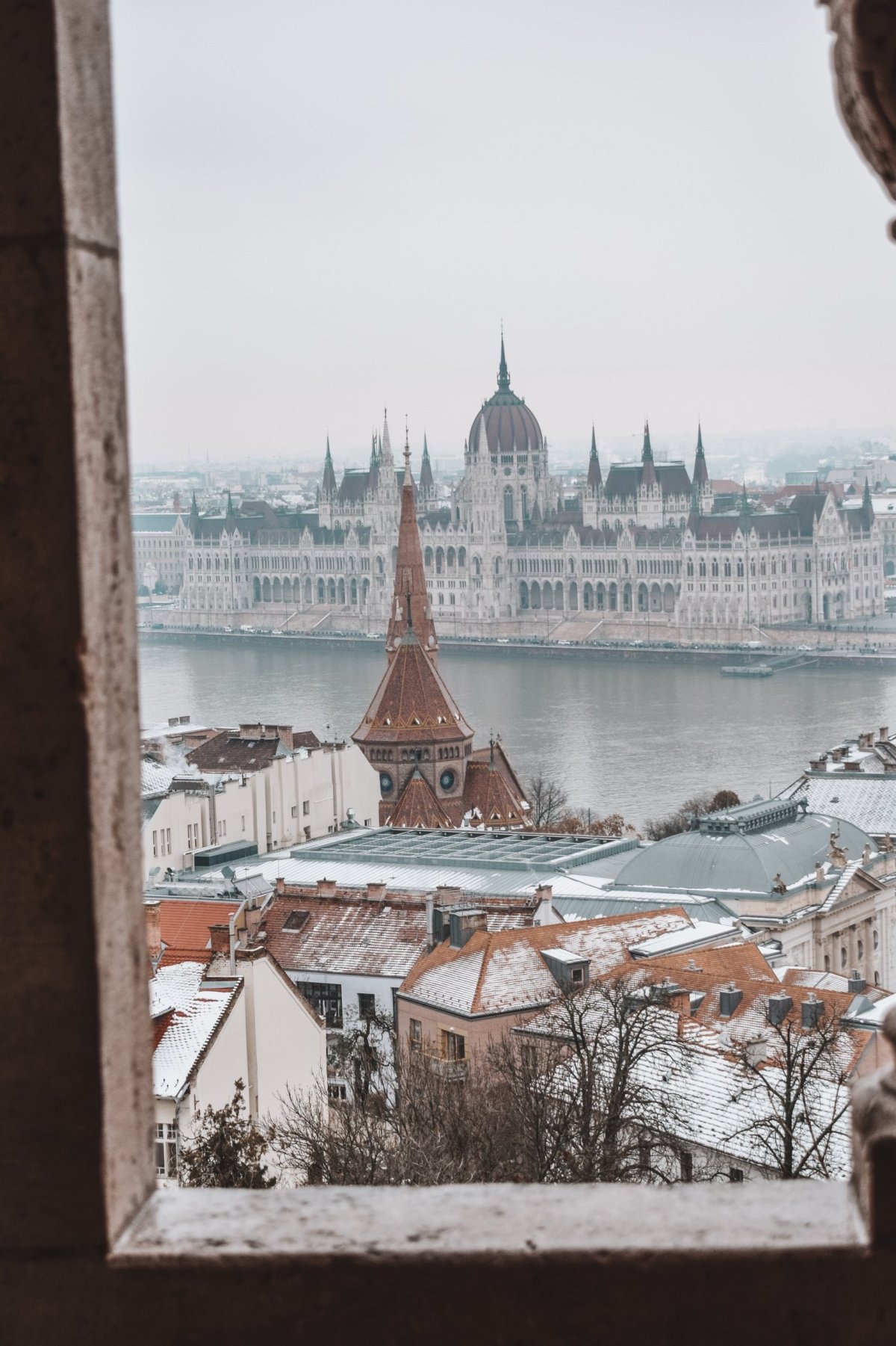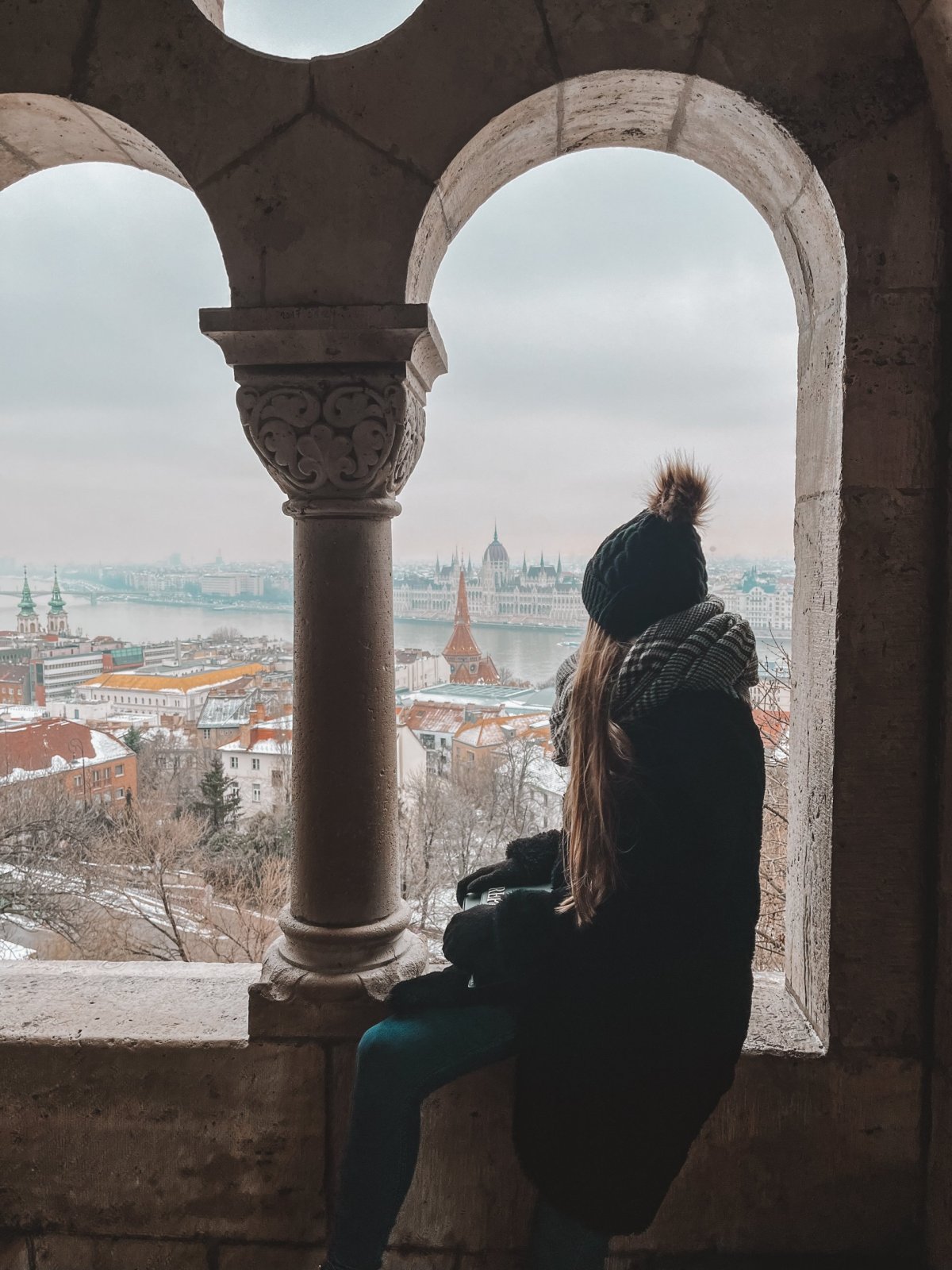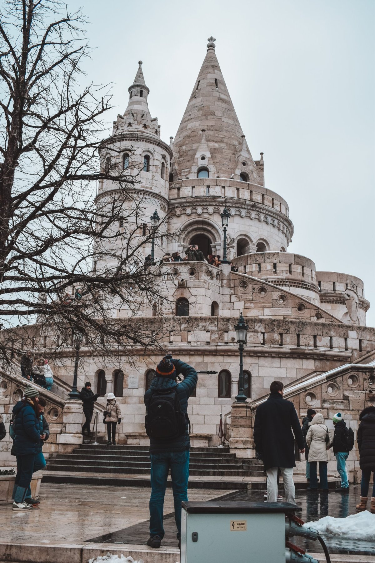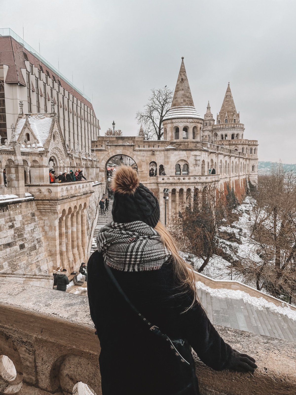 Pokud existuje nějaká stavba, která si mě naprosto získala, tak je to Rybářská bašta. Není tedy divu, že naší první zastávkou byla právě ona. Když jsem byla v Budapešti několik let zpět, byl zrovna červen a vyjít kopec k Baště nebyl úplně med, nedovedla jsem si představit, jak tam půjdeme v prosincových nula stupních. Usoudili jsme tedy, že bude lepší, když se svezeme až nahoru autobusem. Ze zastávky Déak Ferenc tér jezdí autobus č. 16 přímo až na Baštu, vystupuje se na Szentháromság tér. Nástupní stanice je naproti hotelu The Ritz-Cartlon. Je to hned první zastávka za přechodem. Když jsme si chtěli přes aplikaci koupit lístky, byl zrovna problém s platební bránou (byl celkový výpadek), takže jsme pak ještě několik minut hledali automat na lístky. (Ten najdete u vstupu do metra naproti KFC na Déak Ferenc tér, je označený velkým M.)