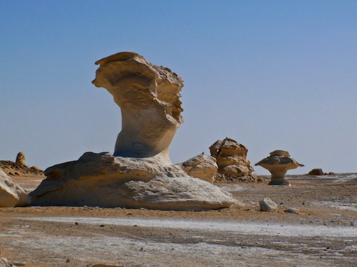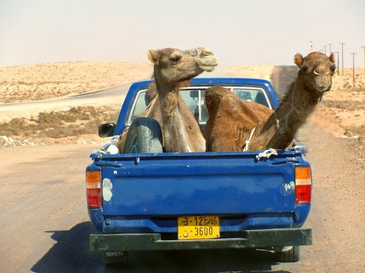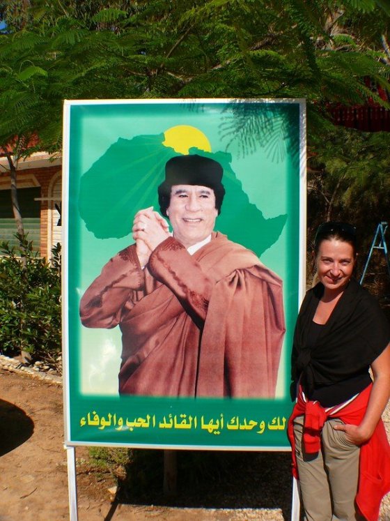 Kamením a skalami jsme se přidrkocali k Libyi. Ta si nás moc neužila, vzali jsme to hopem, neboť Kaddáfí do své země nepustil nikoho bez průvodce, a pořádný průvodce také něco stojí. Tím se cestování po této, jinak nádherné pouštní zemi, stává drahým až luxusním. Na hranicích na nás čekal brýlatý trpaslík v nažehleném obleku s kufříkem v ruce a už z dálky mával oprýskanou žlutou libyjskou značkou v ruce. Vše bylo domluveno a objednáno dopředu, byrokracie tedy netrvala dlouho. Abychom alespoň něco ušetřili, tak jsme si ho nastěhovali do auta. Na 4 dny se uvelebil na předním sedadle a já se mačkala na zásuvkovém systému místo lednice. Vyrazili jsme napříč saharskou zemí, pěkně podél pobřeží. Z každého domu a každého bilboardu se na nás culil neoblomný sebezbožňující se diktátor, celým jménem Muammar Muhammad Abu Minyar al-Gaddafi. Měl se děsně rád, bohužel však skoro jediný.
