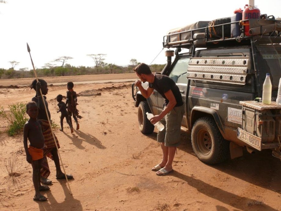 Pokračovali jsme údolím Omo kolem jezera Turkana, do Keni. Je to sice legální, ale né zrovna oficiální hraniční přechod. „Cesty“, můžeme-li to tak nazvat, jsou opravdovým zážitkem, celá vzdálenost, kterou člověk musí urazit z Omorate dolu do civilizace je několik stovek kilometrů. Hluboký písek, koryta vyschlých řek, kamenitá někdy až balvanovitá pista a měsíční krajina se škvárovkou. Je to velice náročná cesta, nejen pro auto, ale i pro nás samotné. Mnoho kilometrů nepotkáte ani živáčka, je třeba mít dostatek nafty a pitné vody. Jeden by si řekl, že jedeme kolem jezera Turkana, tak vody je dost. Jenže Turkana je slané jezero, vody se z něj pít nedá.