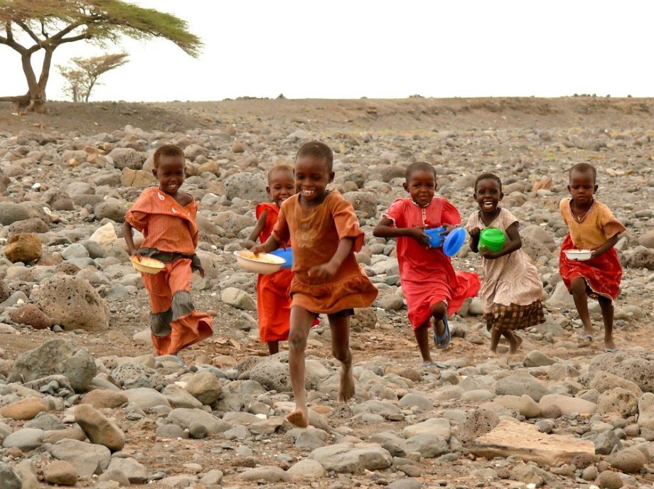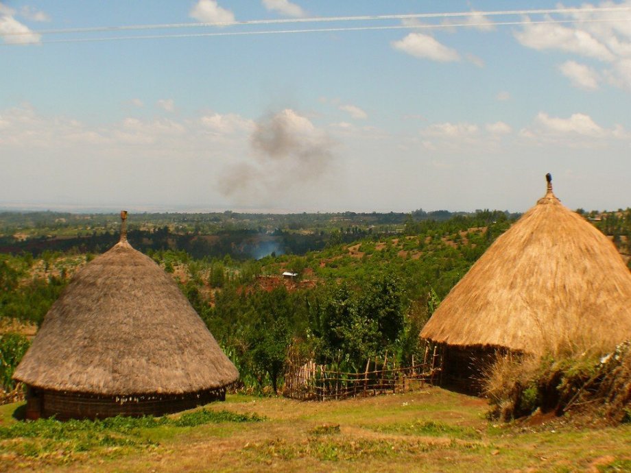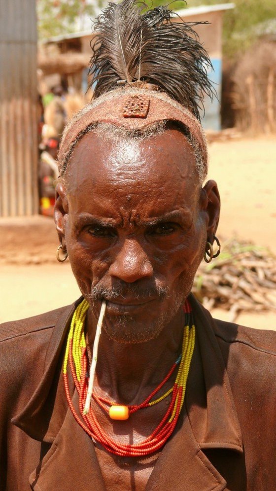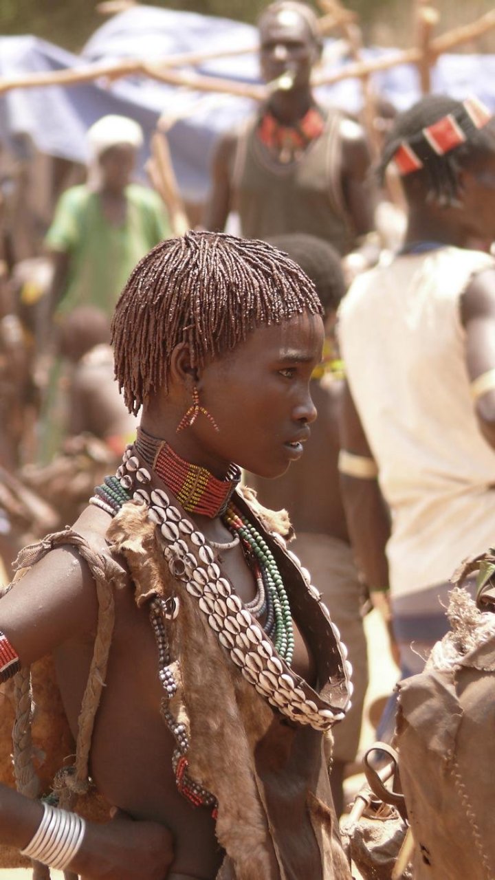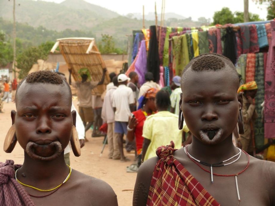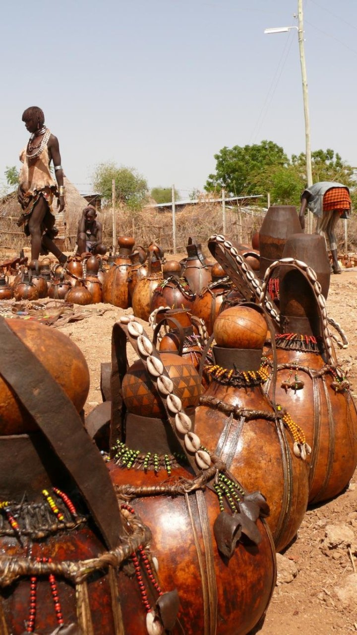 Etiopská krajina je nádherná, kopcovitá, zelená a malebná. Ovšem plná, spíš až přeplněná. Na 1 km2 je vměstnáno zhruba 80 obyvatel (dneska už asi zase o pár víc). Člověk si nemůže ani pořádně odskočit, aby mu k tomu neštěbetal tucet místních. S domorodci jsme navíc neměli nejlepší zkušenosti, vystřelili jsme tedy do míst tradičních kultur, kam jsou přitahovány kroky téměř každého cestovatele – Údolí Omo (Omo Valley). Sobotní trh nabídl barevné pokoukání, domorodci z mnoha kmenů si sem přišli doplnit zásoby. Nejrušnější ovšem byla část, kde se prodával alkohol a tabák. Podroušení Mursiové a Hamaři se pak motali po cestách do svých vesnic. Cestovatelský bůh byl zrovna vzhůru a seslal nám samotného hamarského náčelníka malé vesničky v bílé Toyotě, aby nás vymotal ze spleti cest, cestiček a pist. Nakonec jsme u něj ve vesnici strávili poslední noc při podivné místní večeři. Podávaly se sorgamové šišky, teplé mléko a káva. Vše servírováno v kalabaších, což je vydlabaná usušená dýně sloužící jako talíř, hrnek, naběračka, peněženka a podobně. Večeři zakončil ceremoniál přivolávání boha dešťů. Jižní Etiopii a severní Keňu zasáhli největší sucha. Kolem chatrčí postavených z materiálu "co vítr dal", patřících kmeni Dasaneč jsme opustili pátou zemi putování.