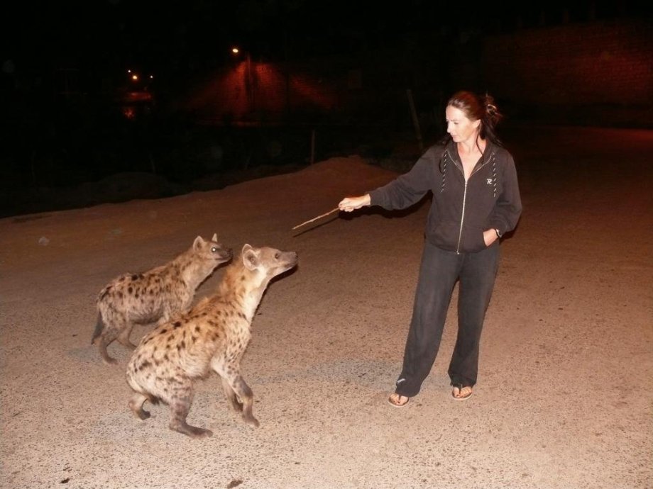 V čase jsme se posunuli opět jinam. Tentokrát ze Súdánu o 600 let vpřed, do 20 století. Do přeplněné Etiopie. Po otřesné cestě jsme se rychlostí 30km/h dodrkocali k pohoří Simiens, kde se také pyšní nejvyšší hora této hornaté země Ras Dashen 4620m a bydlí tu i endemický druh paviánů dželada. Málo času a neustálý boj s žebráky nás hnal kupředu. Objeli jsme Lalibelu a jiné klenoty a hnali se napříč zemí za hyenami. Nikdy mě nenapadlo, že budu stt tváří v tvář jednomu z nejnebezpečnějších a nejodpornějších zvířat africké buše. I přesto, že nás boj s žebráky hnal ze země pryč, i tak jsme se zdrželi měsíc. Etiopie je kávovým rájem. S jídlem na tom také nejsou špatně. V Harer, domově hyen jsme se nechali zlákat k posezení v příjemné etiopské restauraci. Kozí kotlík a obrovská nakyslá placka injera s několika druhy omáček, luštěnin a mas. Injera je národní jídlo, a tak nechybí v žádné hospůdce a restauraci. Po večeři káva, to si člověk vážně nemůže nechat ujít. Příprava je učiněný rituál, čerstvě pražená a servírují ji v krásných hliněných konvičkách do malinkých šálečků.
