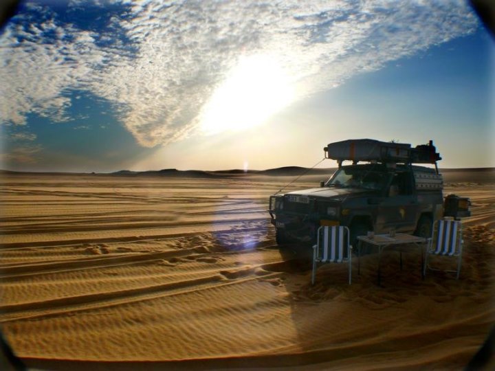 První zemí, jež odstartovala poznávání, bylo Tunisko, kam jsme dorazili po vodě trajektem z Janova. Dva a půl týdne jsme brouzdali křížem krážem touto turisticky známou destinací. Na severu po pobřeží, kde se nachází nejsevernější místo Afriky – Ras Endjella až k alžírským hranicím. Od Mekky pro chudé - Kairouan, čtvrté nejposvátnější muslimské město, napříč daleko na východ k vodám Středozemního moře na mys Africa. Zpátky k alžírským hranicím a dolů přes původní úkryt Berberů na vrcholu Table de Jughurta, přes obrovské solné jezero Chott el Jerid na jih do bílých i oranžových pouštních písků. První zkušenost v písečných dunách za branou pouště nám připravila i fázy vyprošťování. Naštěstí kousek od civilizace s dostatkem vody a potravin.