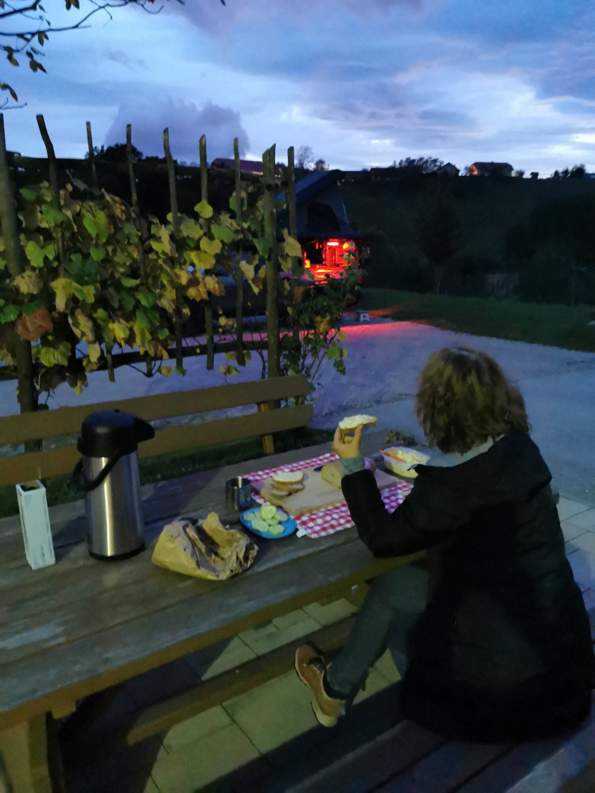 Cesta úplně v pohodě. Dálnice prázdná. V 18h jsme dorazili do cíle na farmu ve Slovinsku, nedaleko Mariboru, kterou jsme vybrali v aplikaci Park4night.