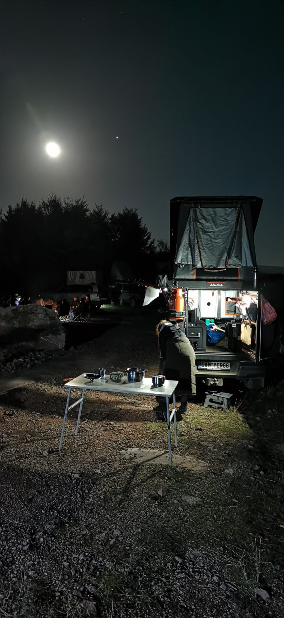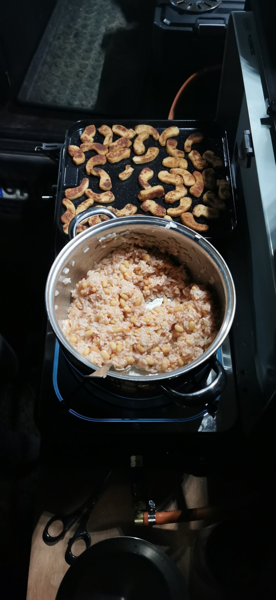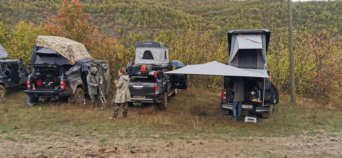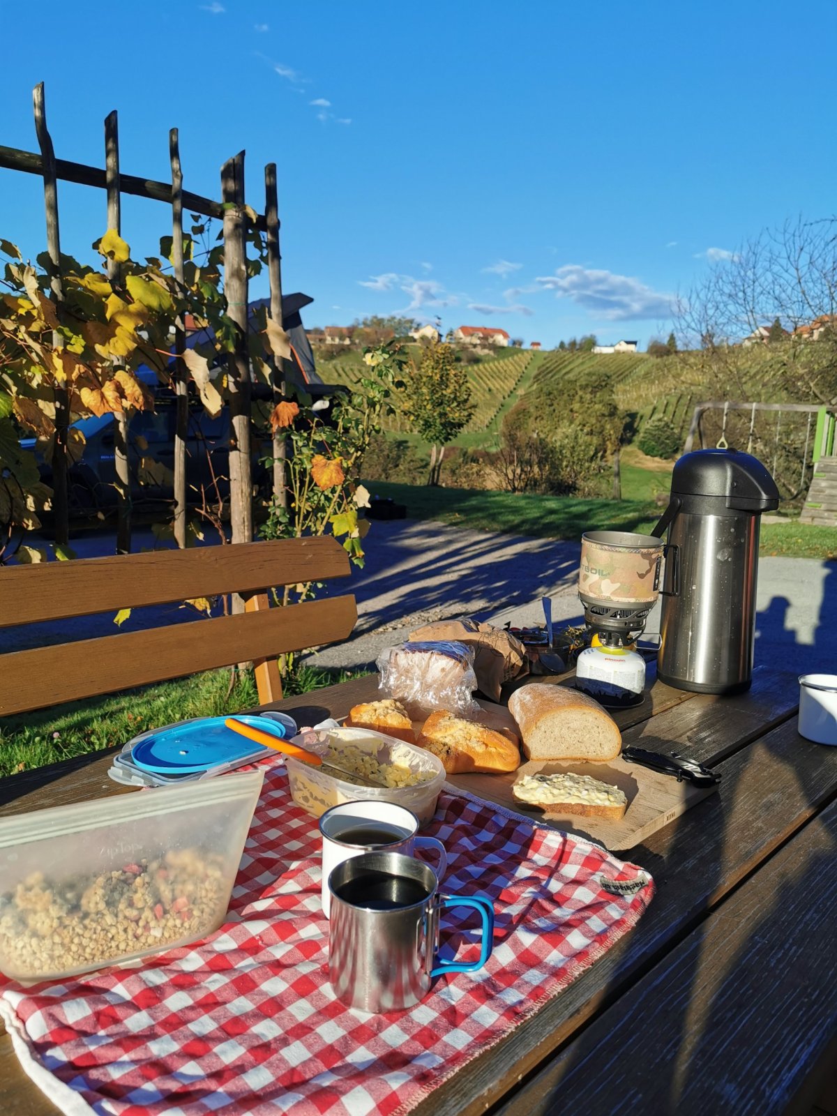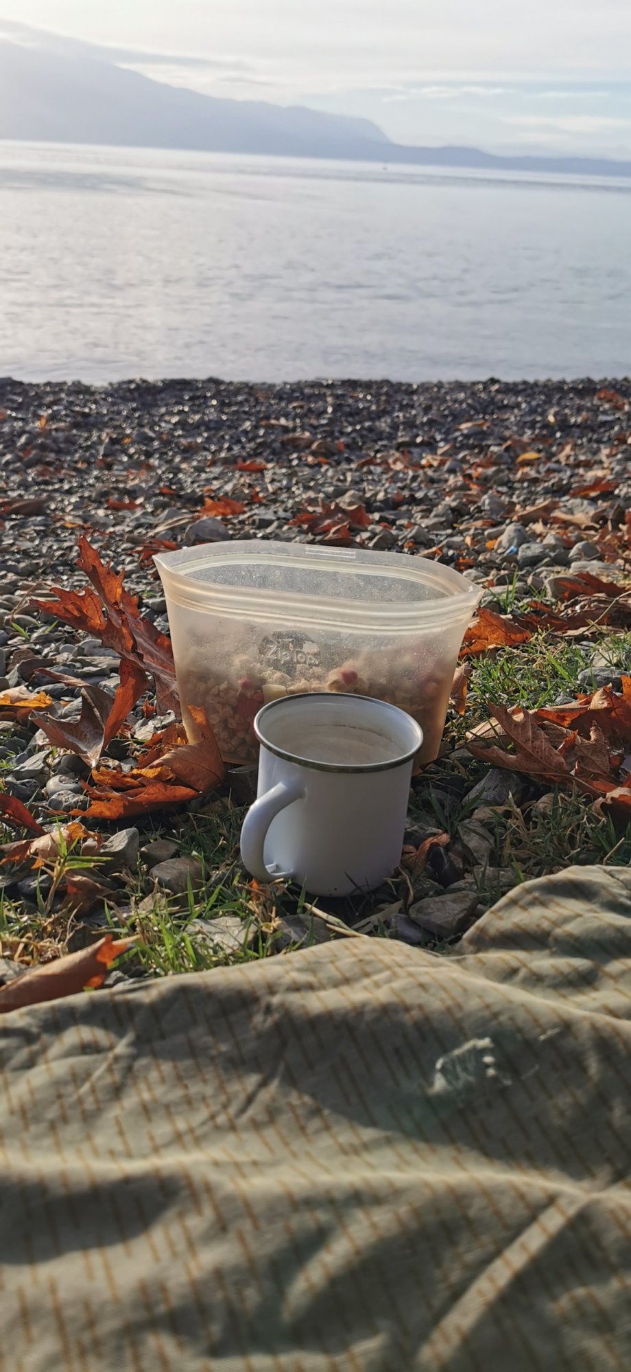Další den ráno stojí naše auto blízko Honzy, který s sebou na kávovar na 220V. Vyzkoušíme uvařit kafe na naší baterku a je to zcela bez problémů. 2 kafe uberou celkem 5% kapacity. Máme Ecoflow delta 2 a je super. Po cestě ji dobíjíme z 12V zásuvky a tak je pořád na 100% nabitá.