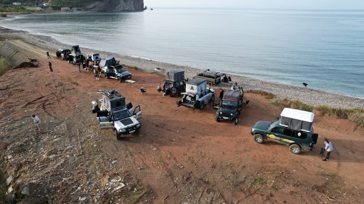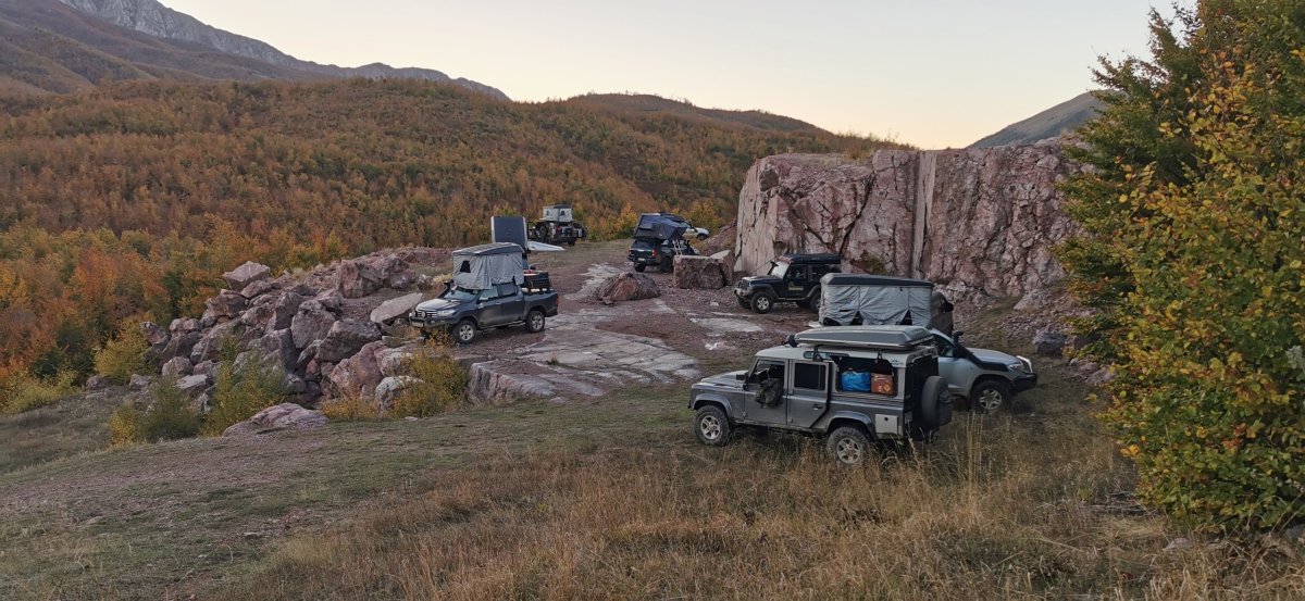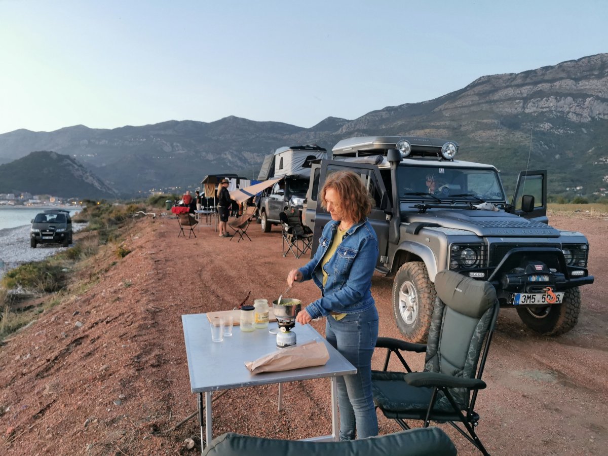 V kempu Buljarica v Černé Hoře jsme se měli sejít večer všichni a nakonec se sešlo 10 aut. ( cena za auto a noc byla 15 €) .Brzy se zjistilo, že tu jsou jen 2 auta nováčků. Dostali jsme čísla 1 (a 2) což znamenalo pořadí v jakém se jede za průvodcem.