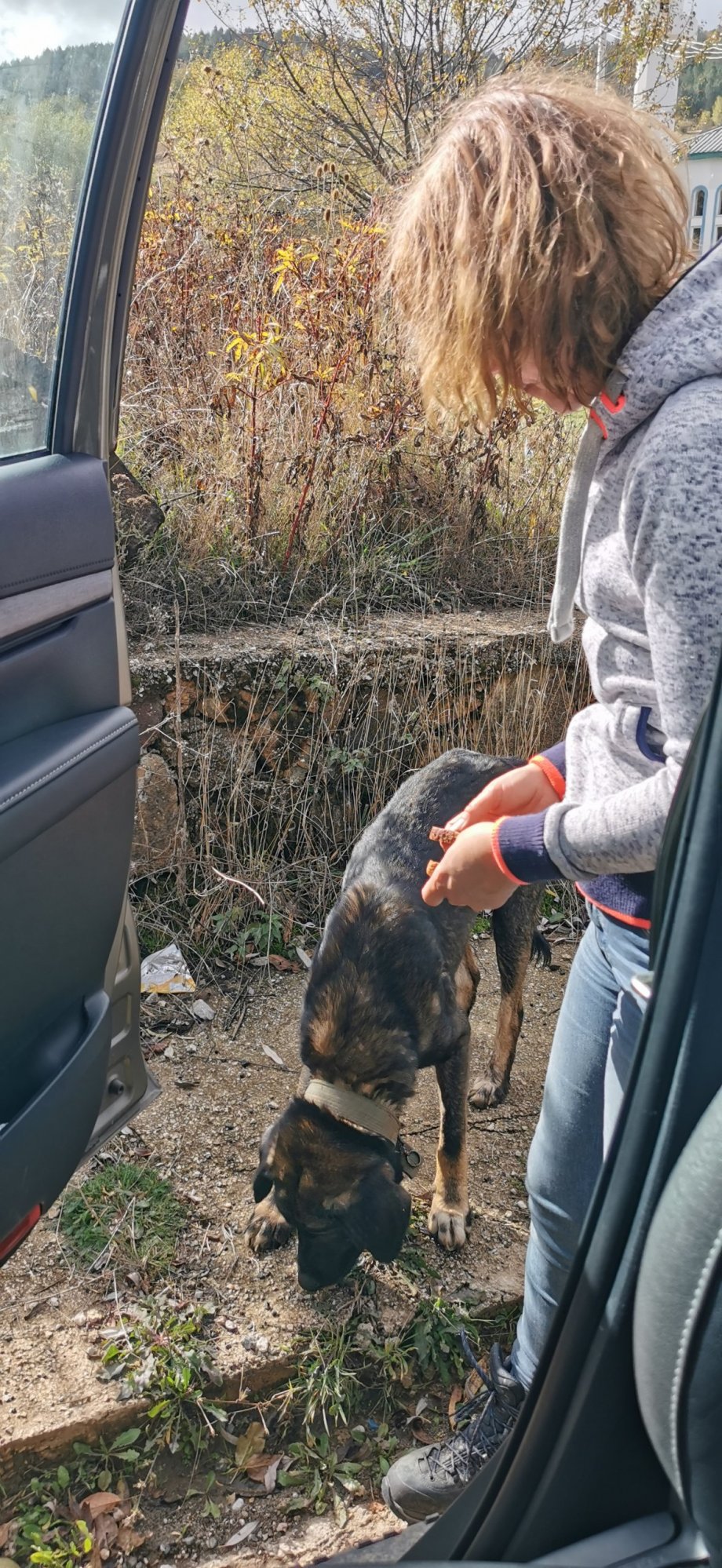 Není to ale tak snadné jak se zdá. Nechá se pohladit ale boji se všeho. Zvuků, auta, lidí. Nepodaří se nám ho nalákat do auta. Musí tu zůstat.