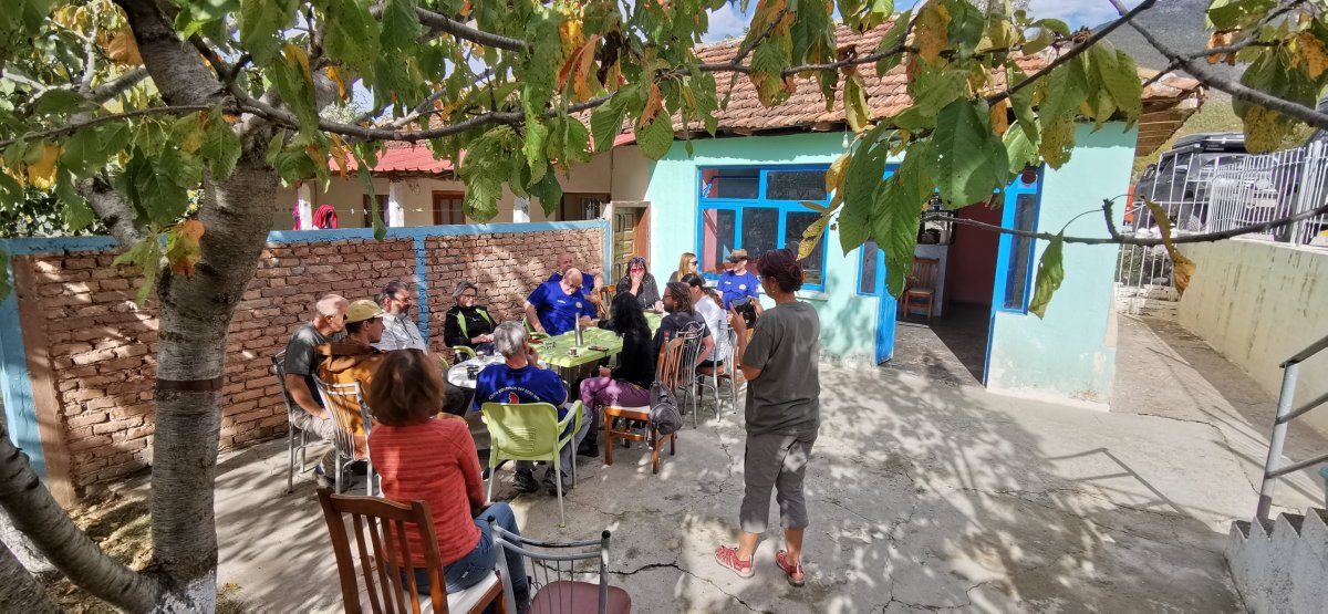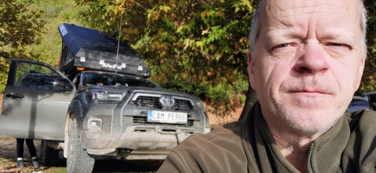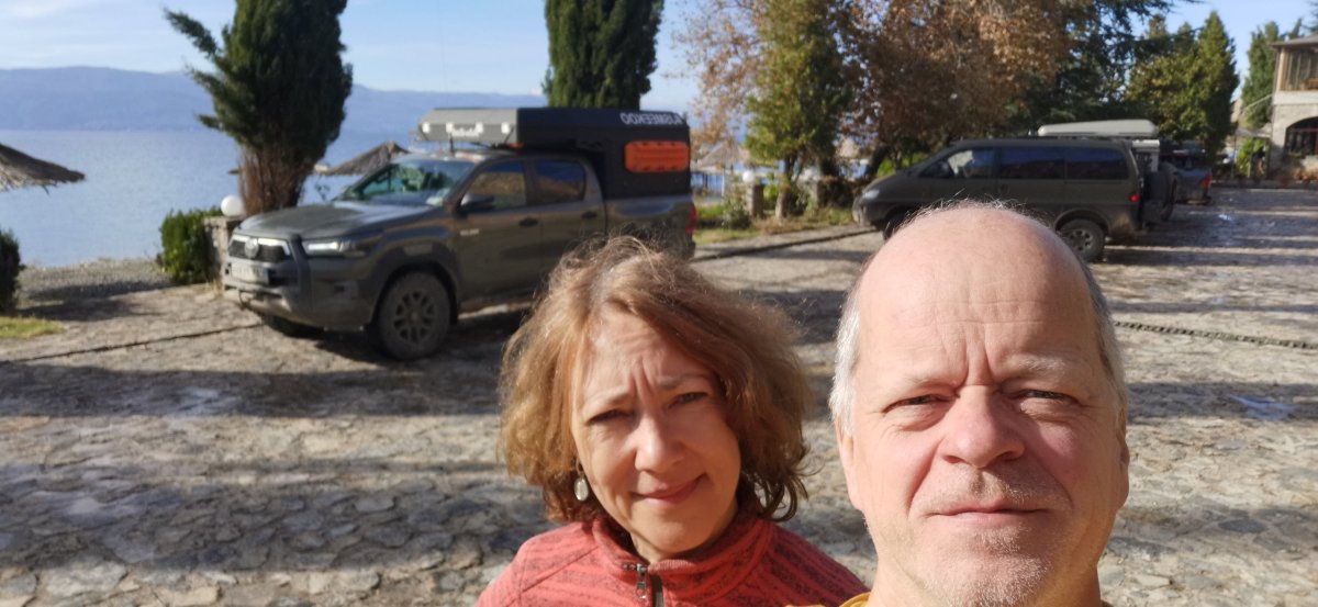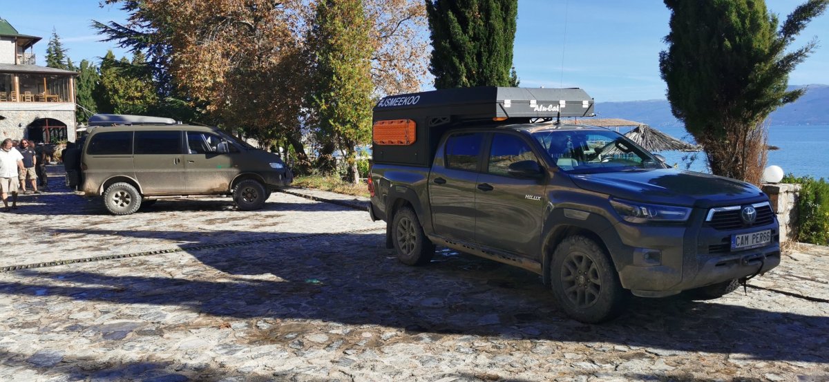 Jakmile se objeví majitel, hned se seznámíme a on nám vypráví, že je na cestě kolem světa. Už rok a půl. Vyjel skutečně z Austrálie s manželkou a psem. Překonal Asii a nyní je v Evropě. Z cesty je nadšený. Náš průvodce mu pomáhá najít zajímavou cestu mimo silnice po Albánii.