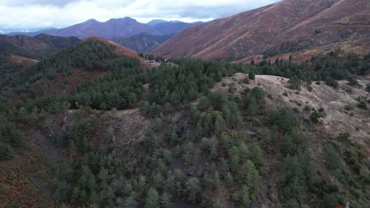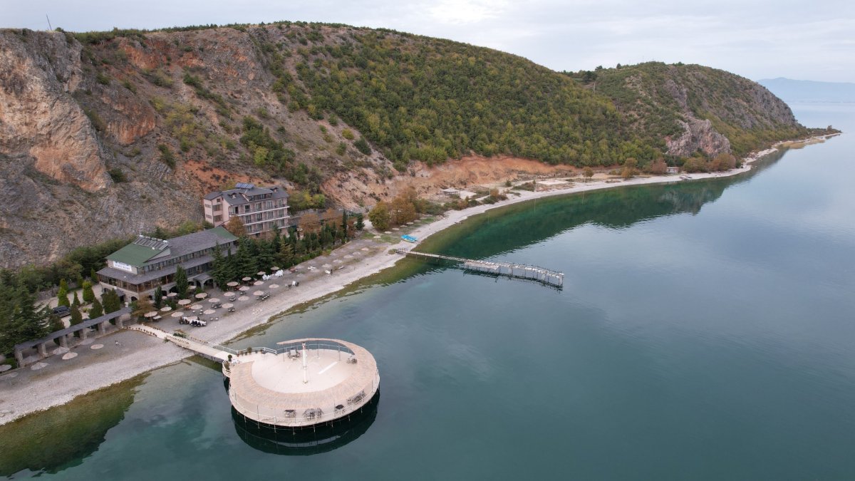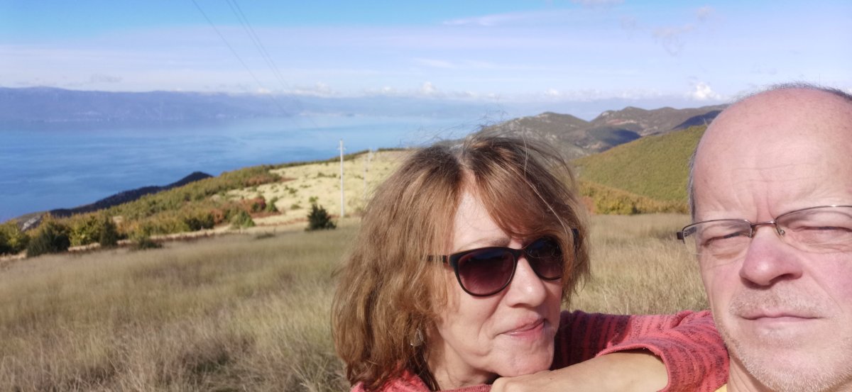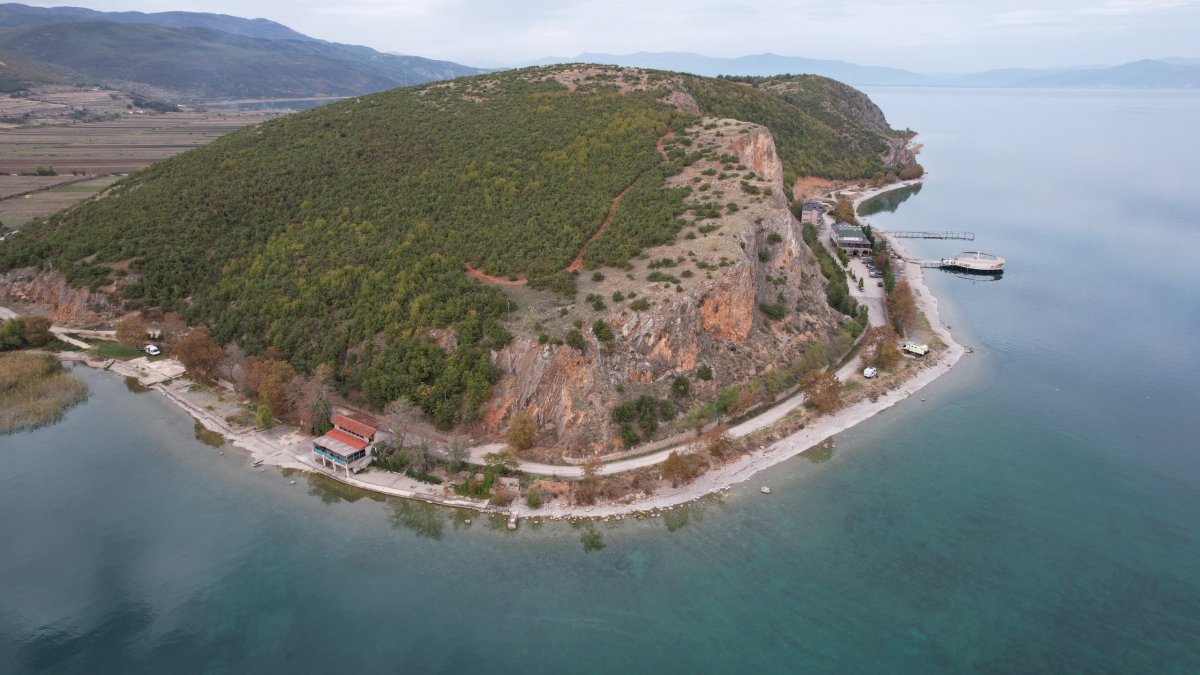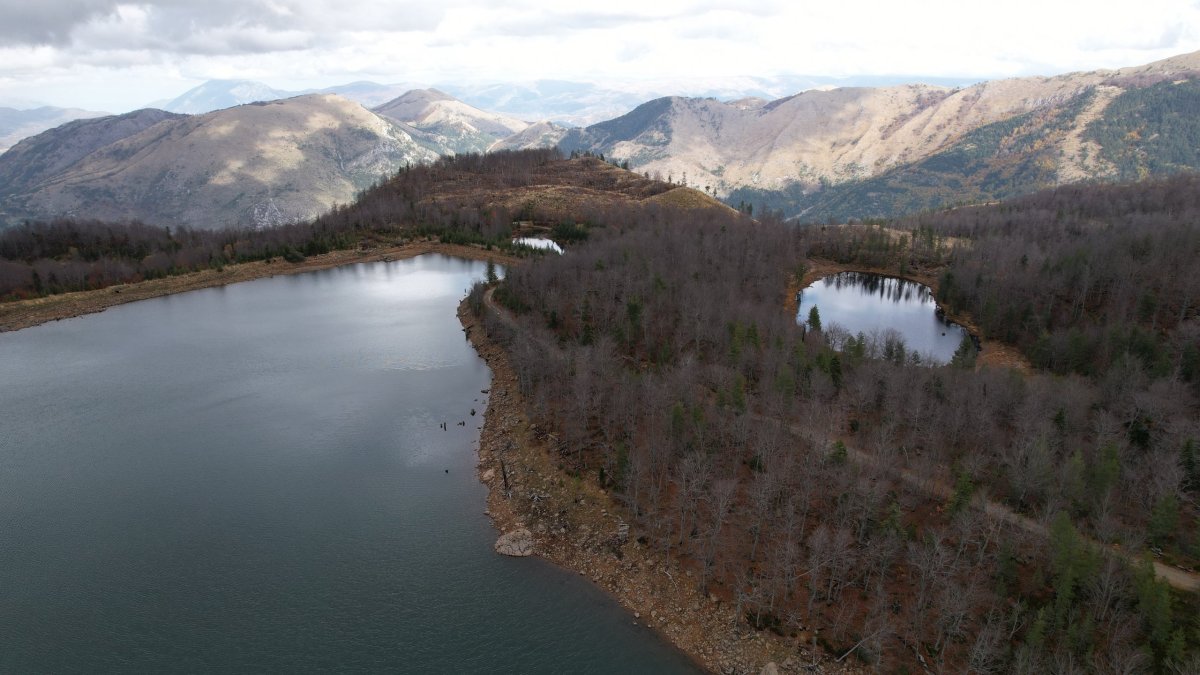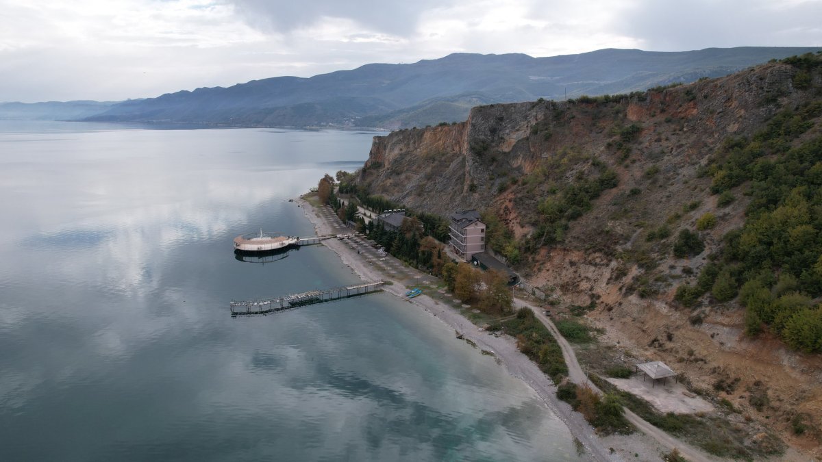 Vyjíždíme do hor po zničených cestách a stále vidíme Ohrinské jezero. Nyní už z výšky.