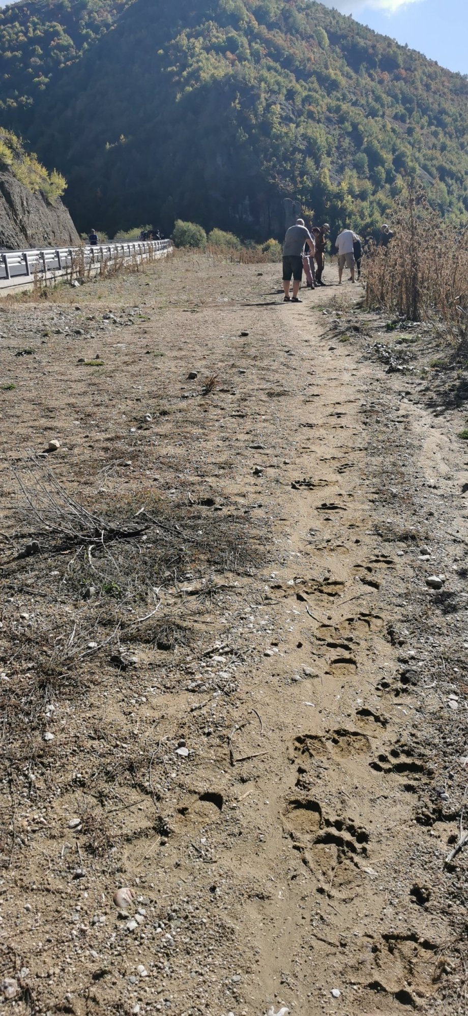 Mezitím Monika, která se vydala do křoví u dálnice nadšeně volá, že má stopy medvěda. Čerstvé!