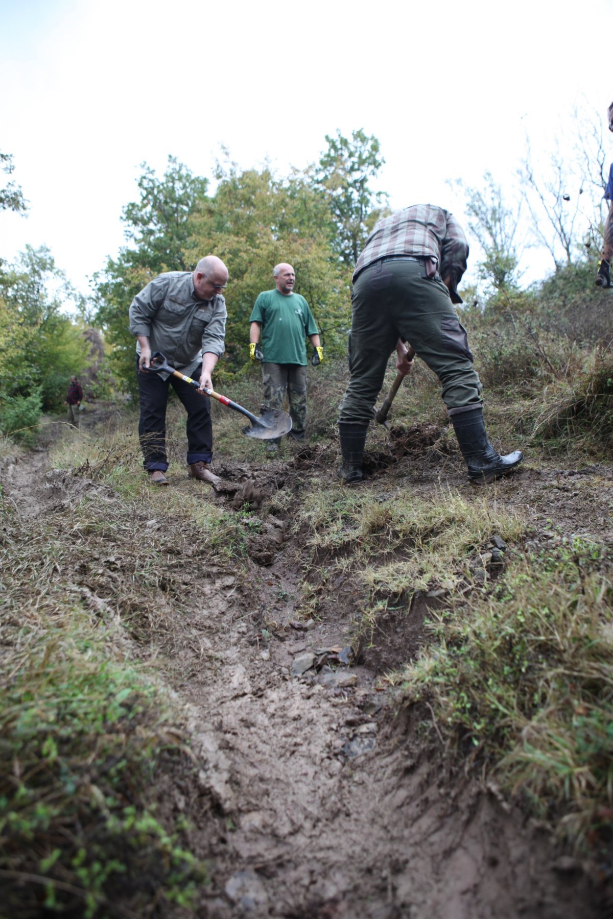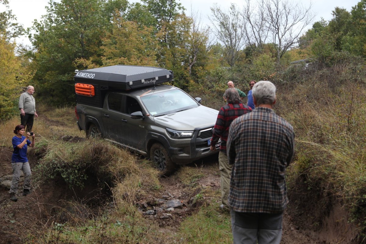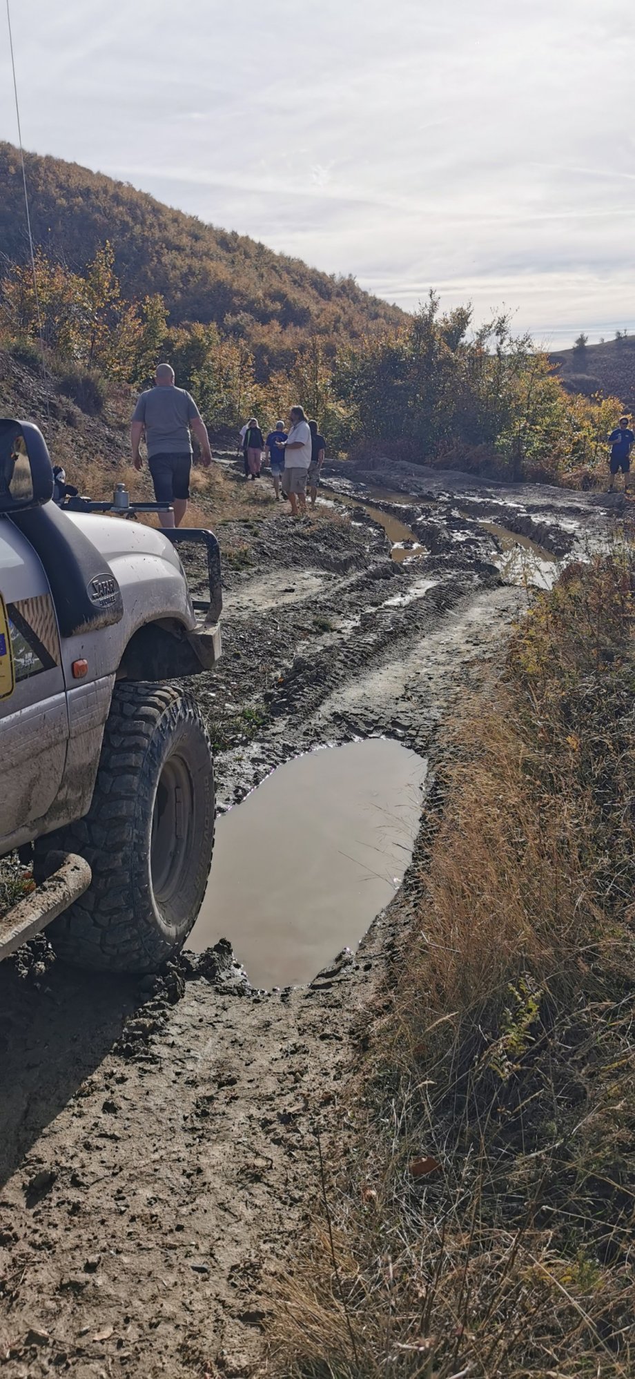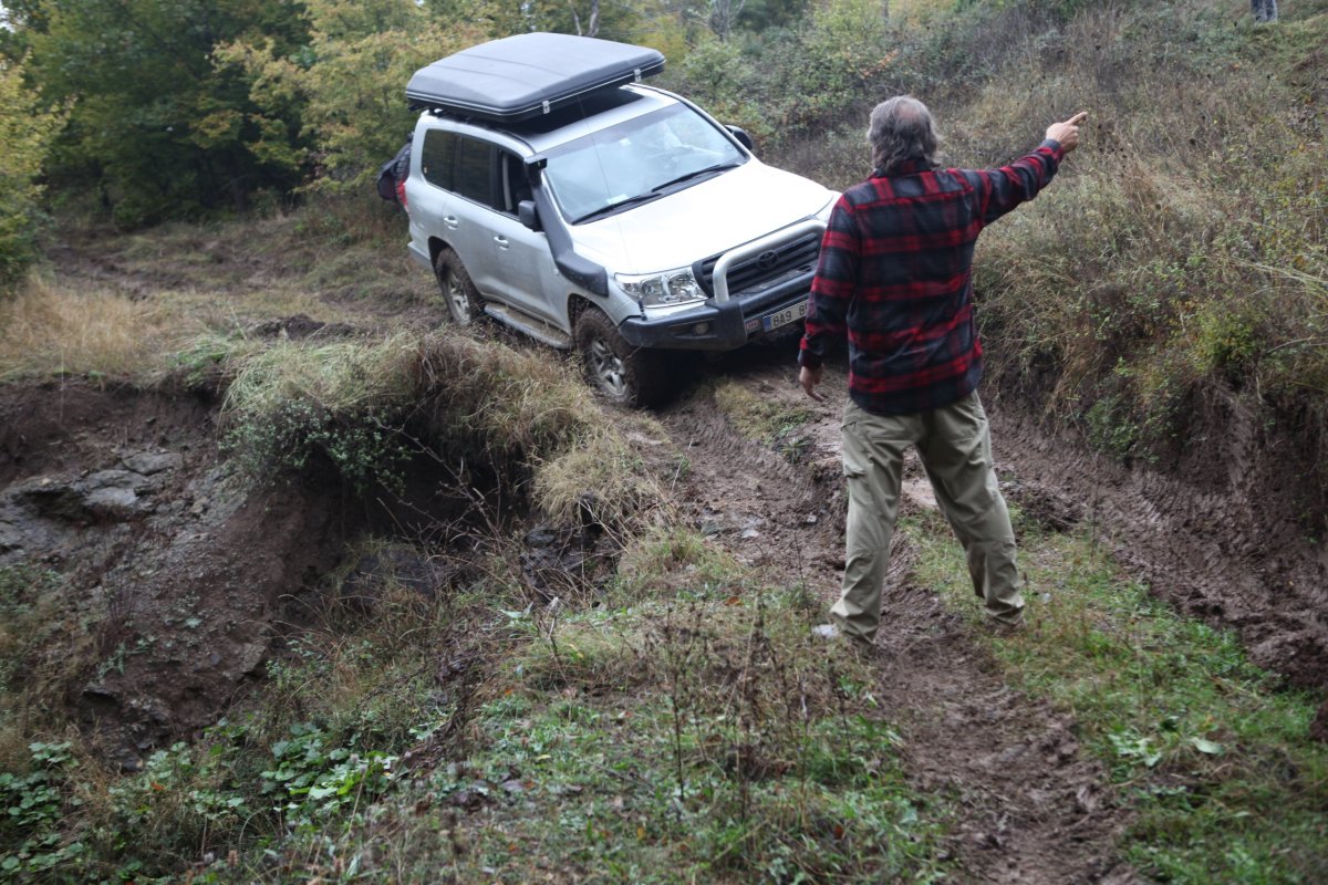 Druzí jsme na řadě my. Jana fotí a já se držím pokynů našeho průvodce. Přejedu to a oddychu si. Není to moc dobré a přijde na řadu krumpáč a rýče. Pro ostatní auta se upraví nájezd a nakonec všichni úzkou část projedou.