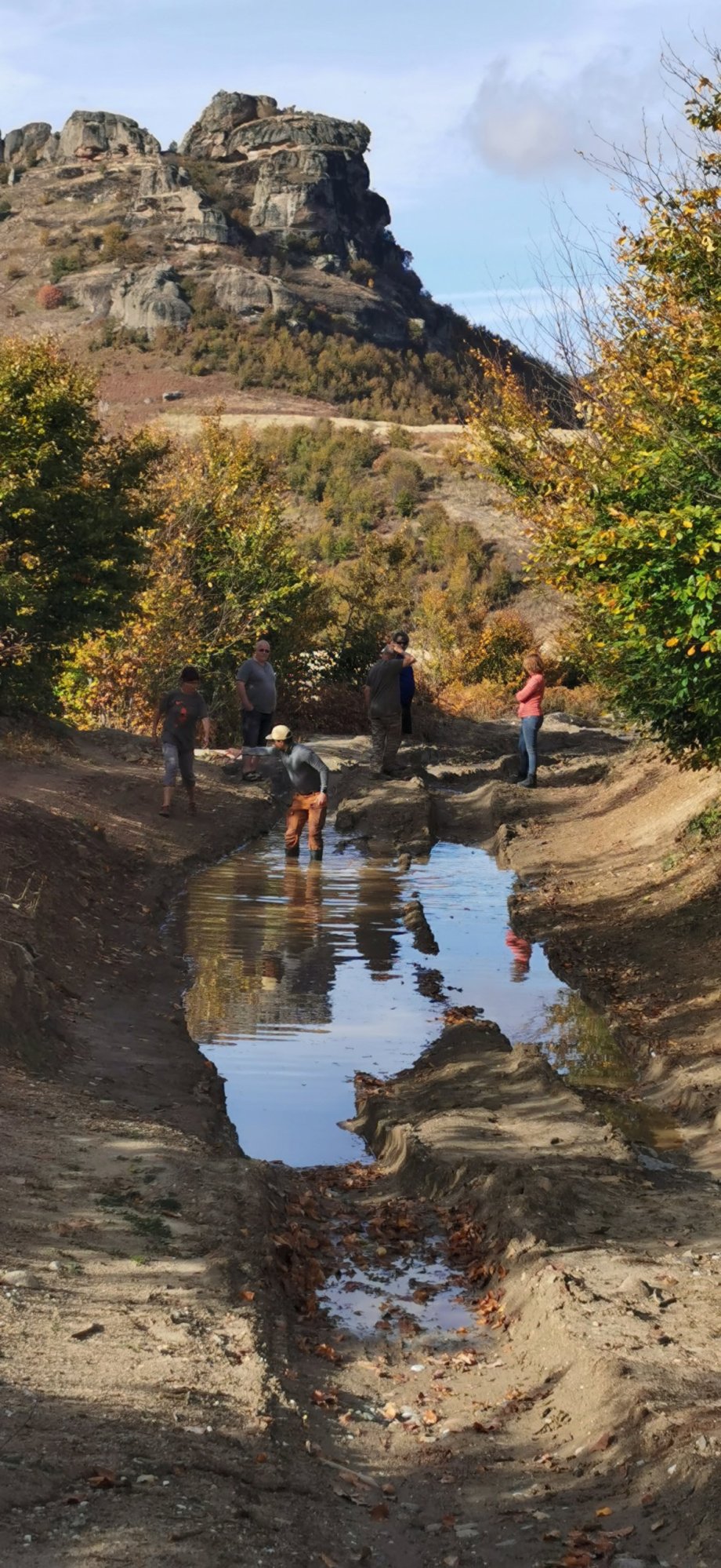 Velký kámen, později odhadujeme na hmotnost 1-2 tuny, leží na cestě a nedá se objet. Nejde s ním hnout ani v pěti lidech. Vymýšlíme páky a jiné nápady ale kámen se nehne ani o kousek. Nakonec náš průvodce vytáhne dlouhou kurtu a mě napadne, že ten kámen odtáhne autem.