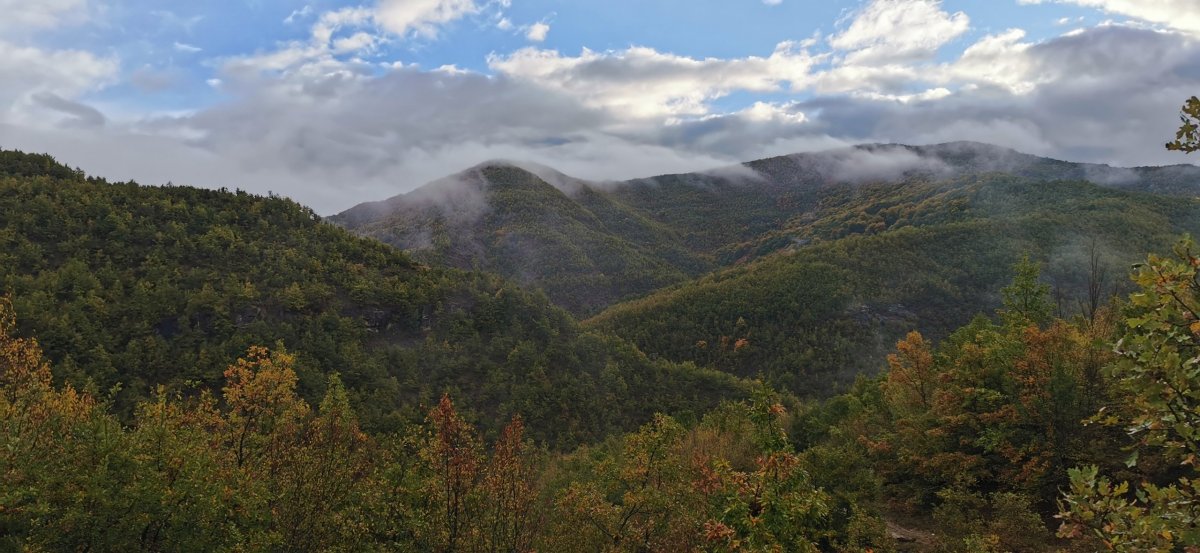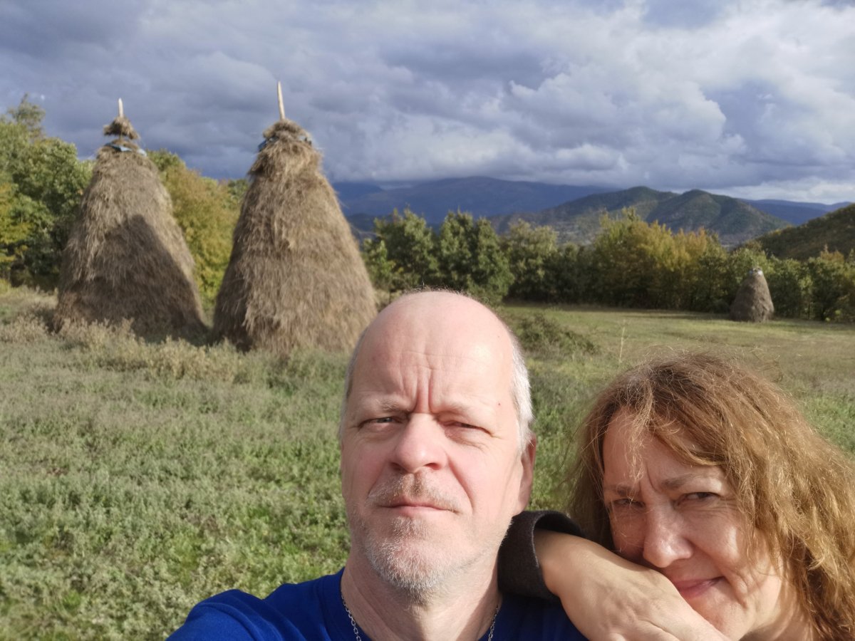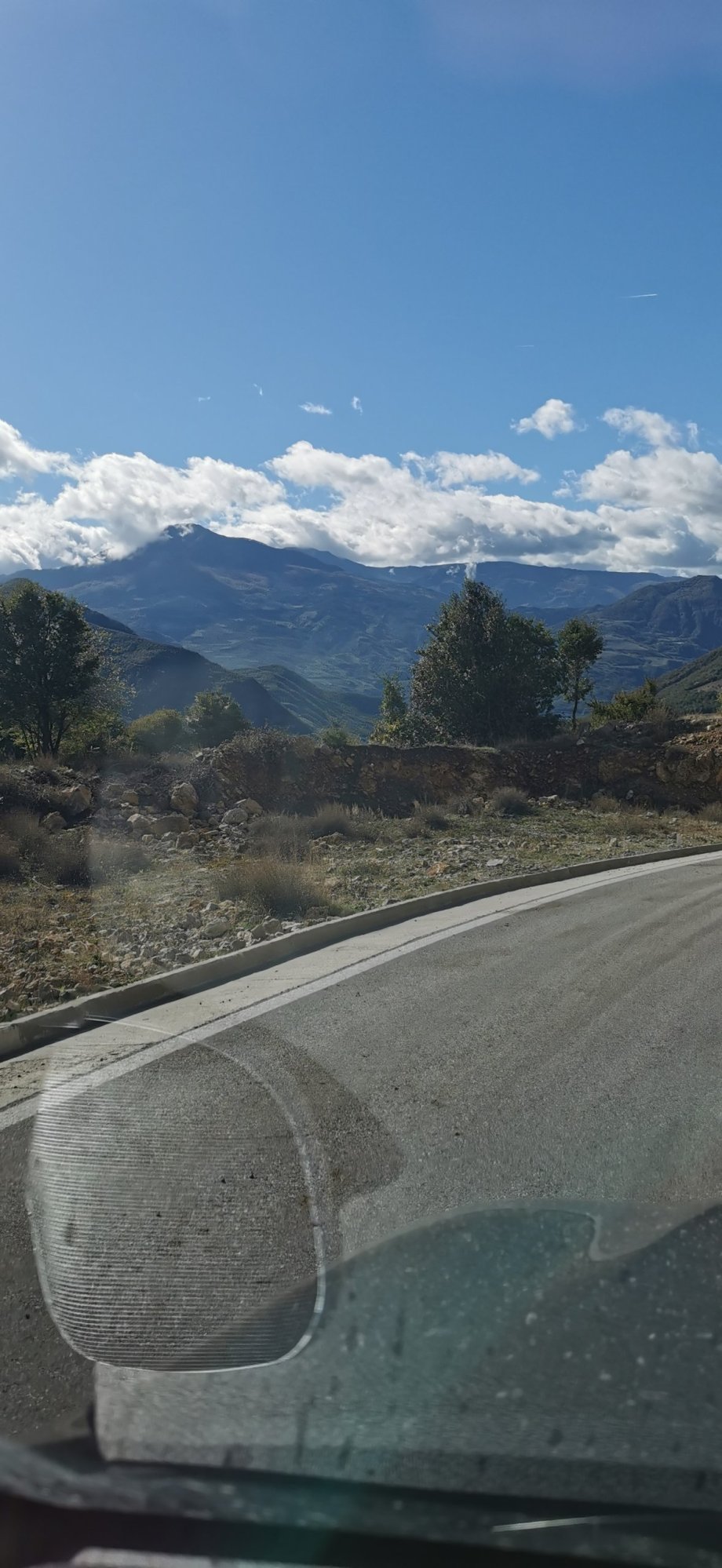 Dálnice nám nečekaně končí a sjíždíme prostě do hor. Cesty jsou náročné, hrbolaté ale to se nám líbí. V jednu chvíli najdeme louku a najíme se.