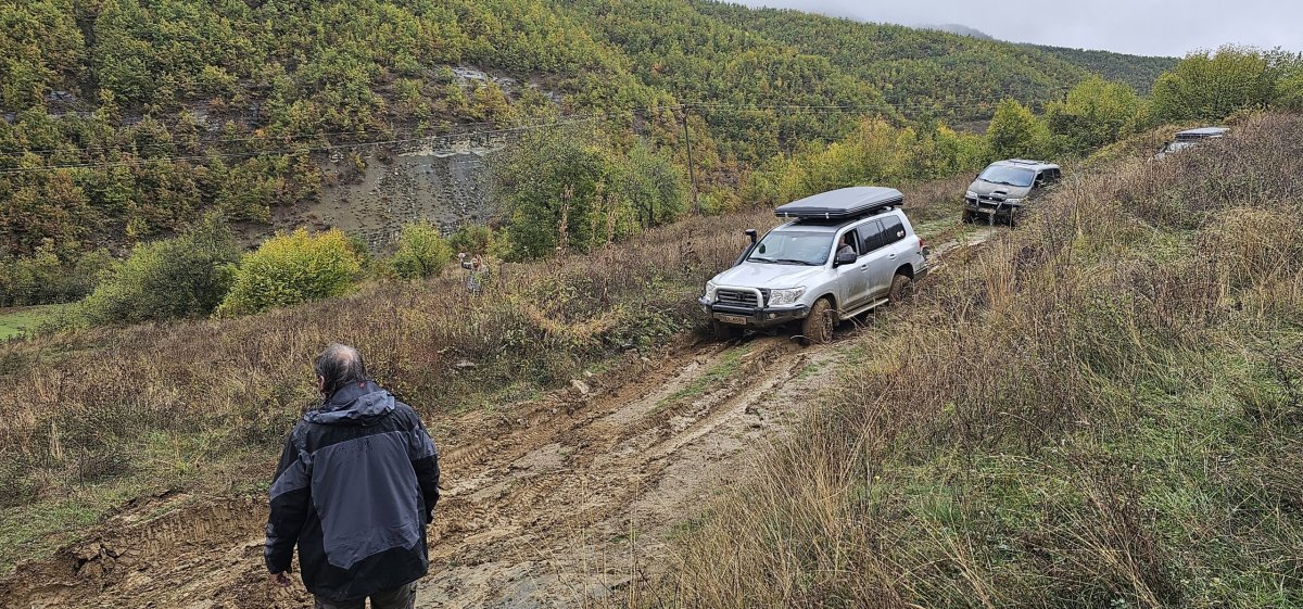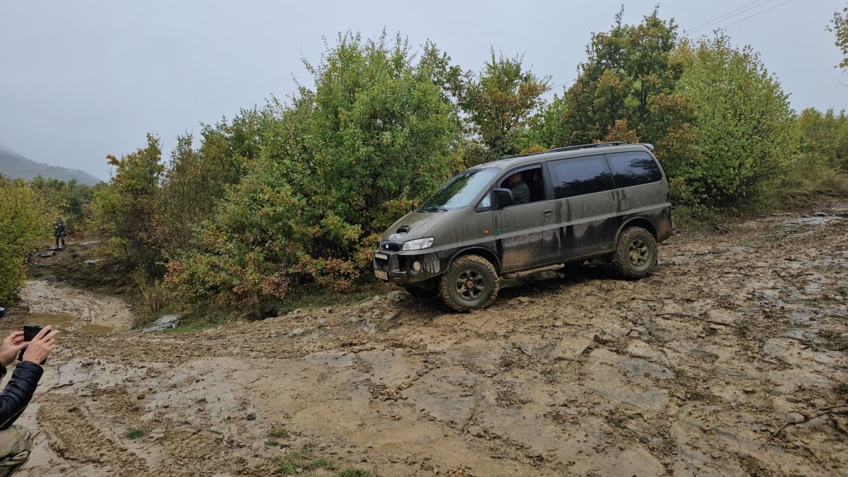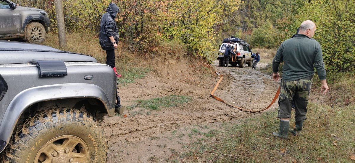 Když tak jedeme přes hluboké bahno, zničenou cestu, všechny terénní vozidla krokem do kopce, ozve se zvláštní hlášení posledního vozu koloně.