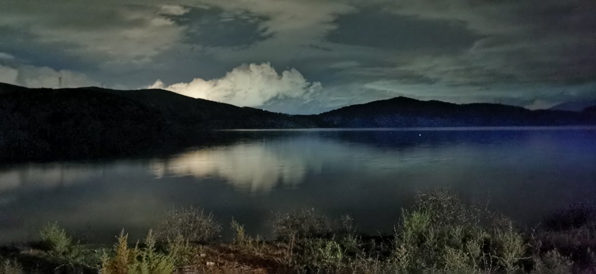 Skončíme až na vrcholu hory asi v 1000 mnm mezi řídkým porostem borovic. Je už tma a předpověď počasí je déšť. Hodně fouká vítr. Půda je mokrá, všichni už odložili tenisky a letní obuv. Potmě se najíme, uděláme oheň a je bezva zábava pro vyprávění historek, které snad ani nejsou možné.