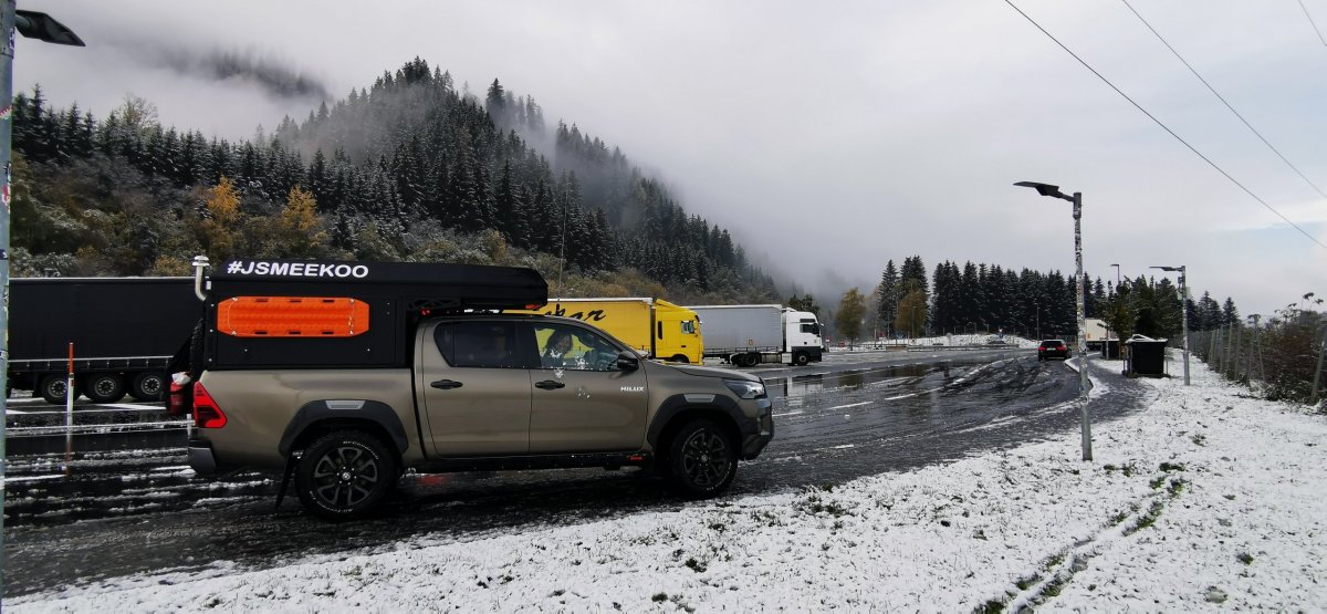 Zažili jsme snad vše kromě sněhu. A ten se nakonec objevil, když jsme přejížděli Alpy. Napadl asi chvíli před námi a dovolil nám přidat k fotkám kde se koupeme v moři další fotky, kde se koulujeme. Jsou 2°C