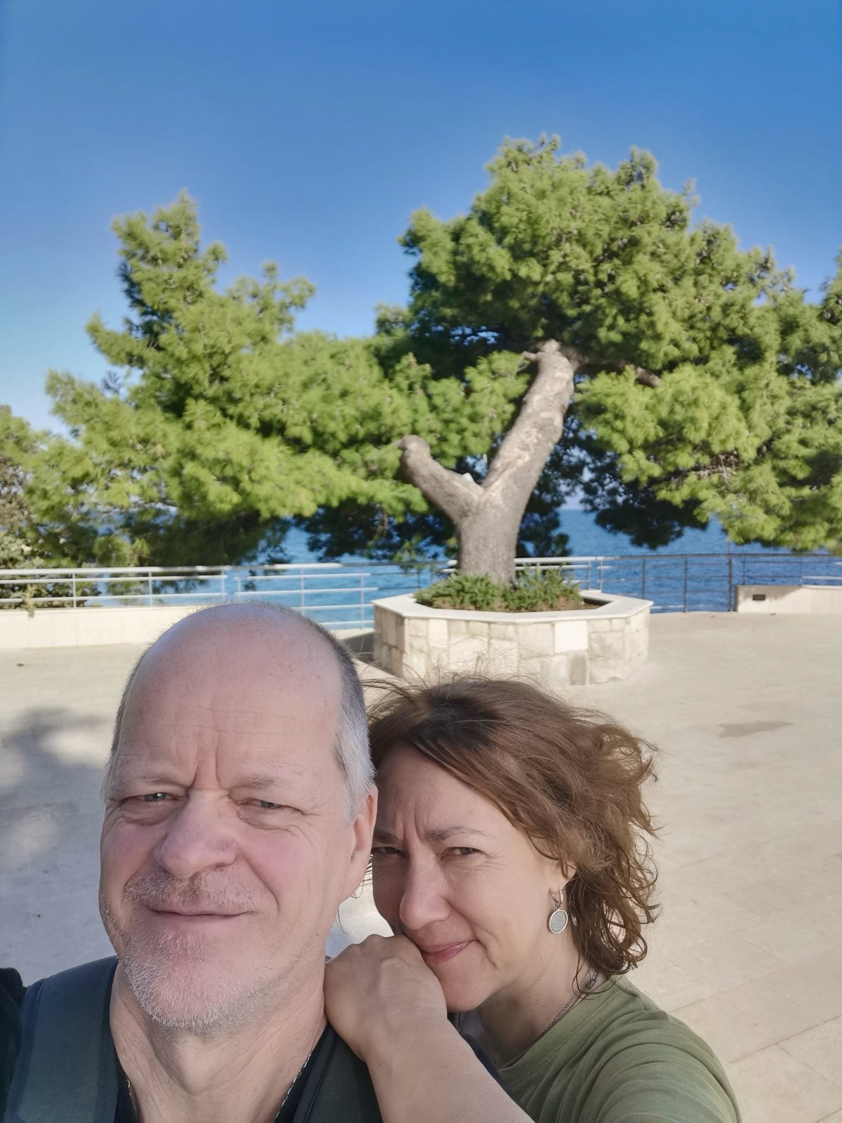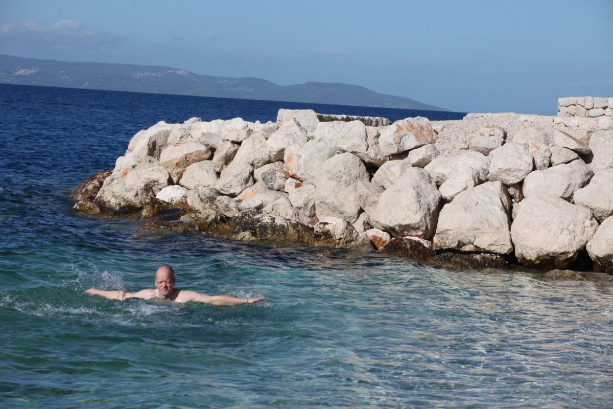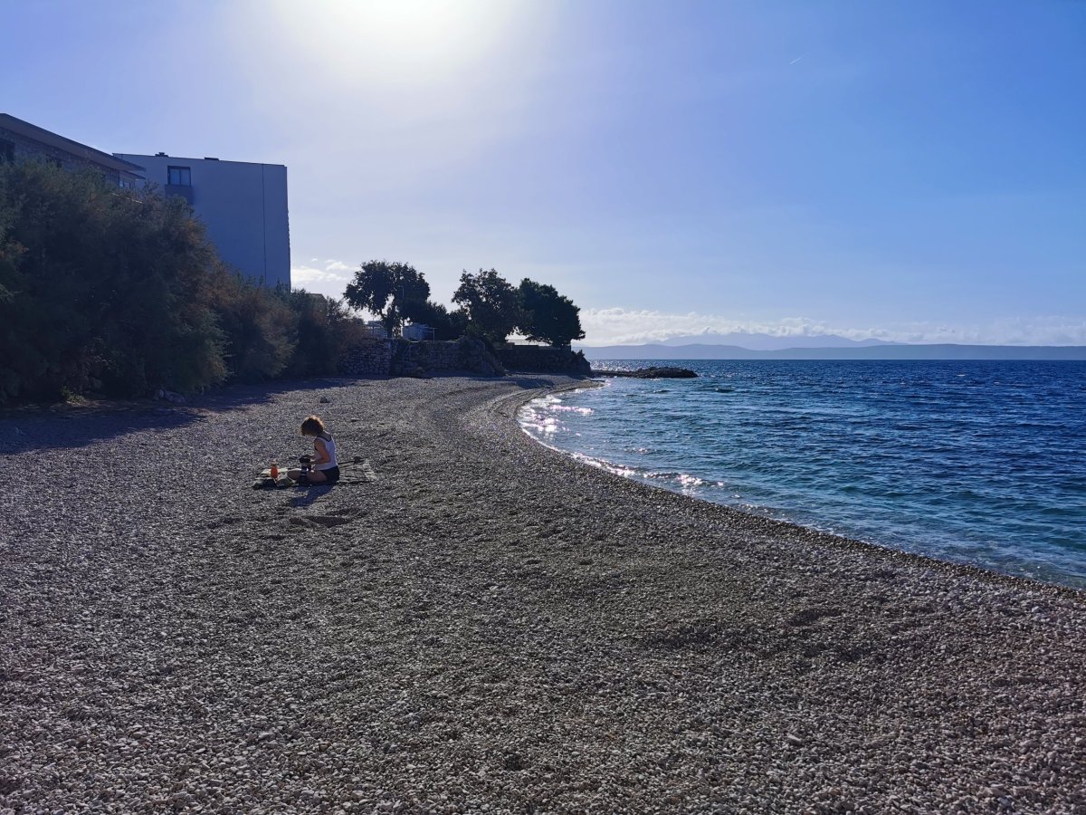 Ráno jsme vstali brzo a rozhodli se snídat na cestě. Nakonec jsme dojeli až do Podgory, kterou znám velmi dobře. I Janě se tu moc líbilo. Pláž zcela prázdná. Nikde žádní turisté. Parkoviště volné. 90% obchodů zavřeno. Moře krásně teplé a čisté.