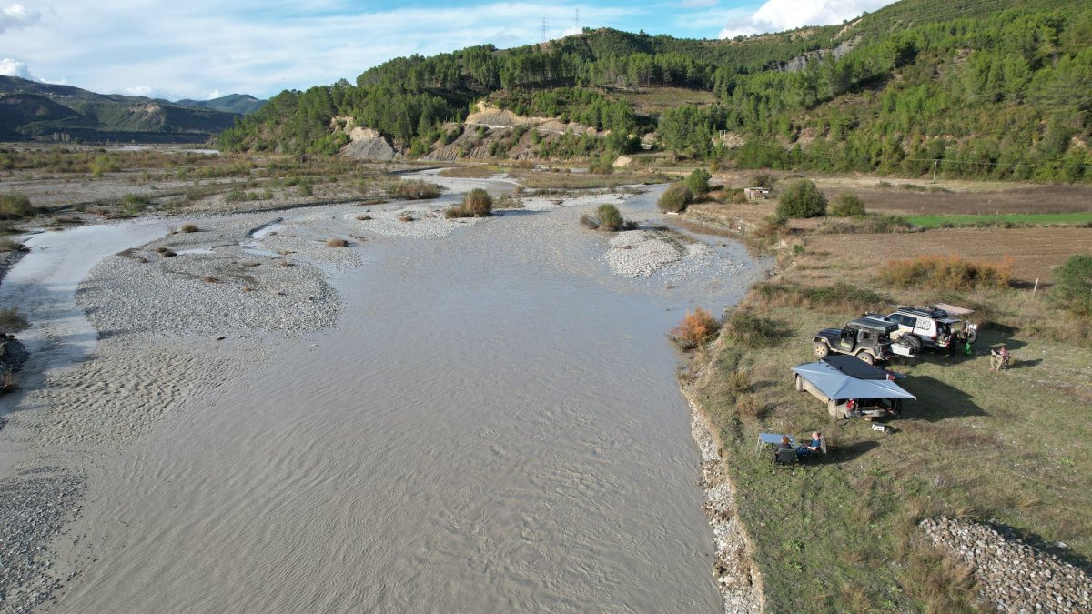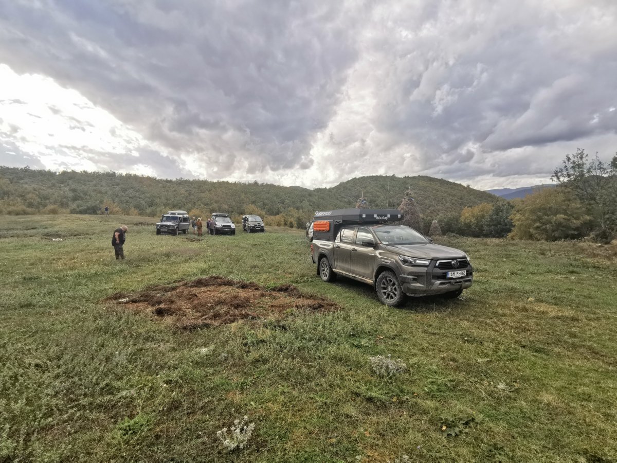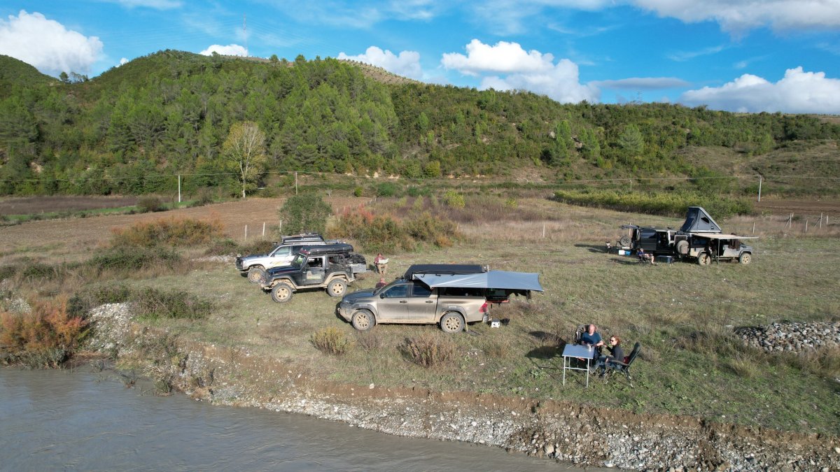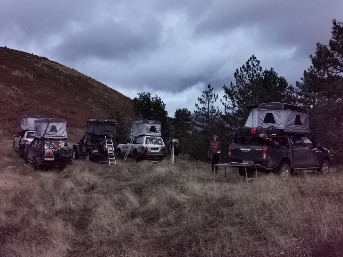 Díky zpoždění v terénu jedeme i v noci. Do místa táboření ještě v Albánii kousek od hranic dorazíme za tmy ve 20h.