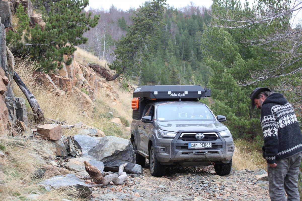 Dnešní den končí na těžké cestě, která je nakonec stále horší a vypadá to, že dále to nepůjde bez použití pily a poškrábání aut na úzké, nepoužívané cestě. Jsme už ale pár kilometrů od cesty, kterou chceme pokračovat.